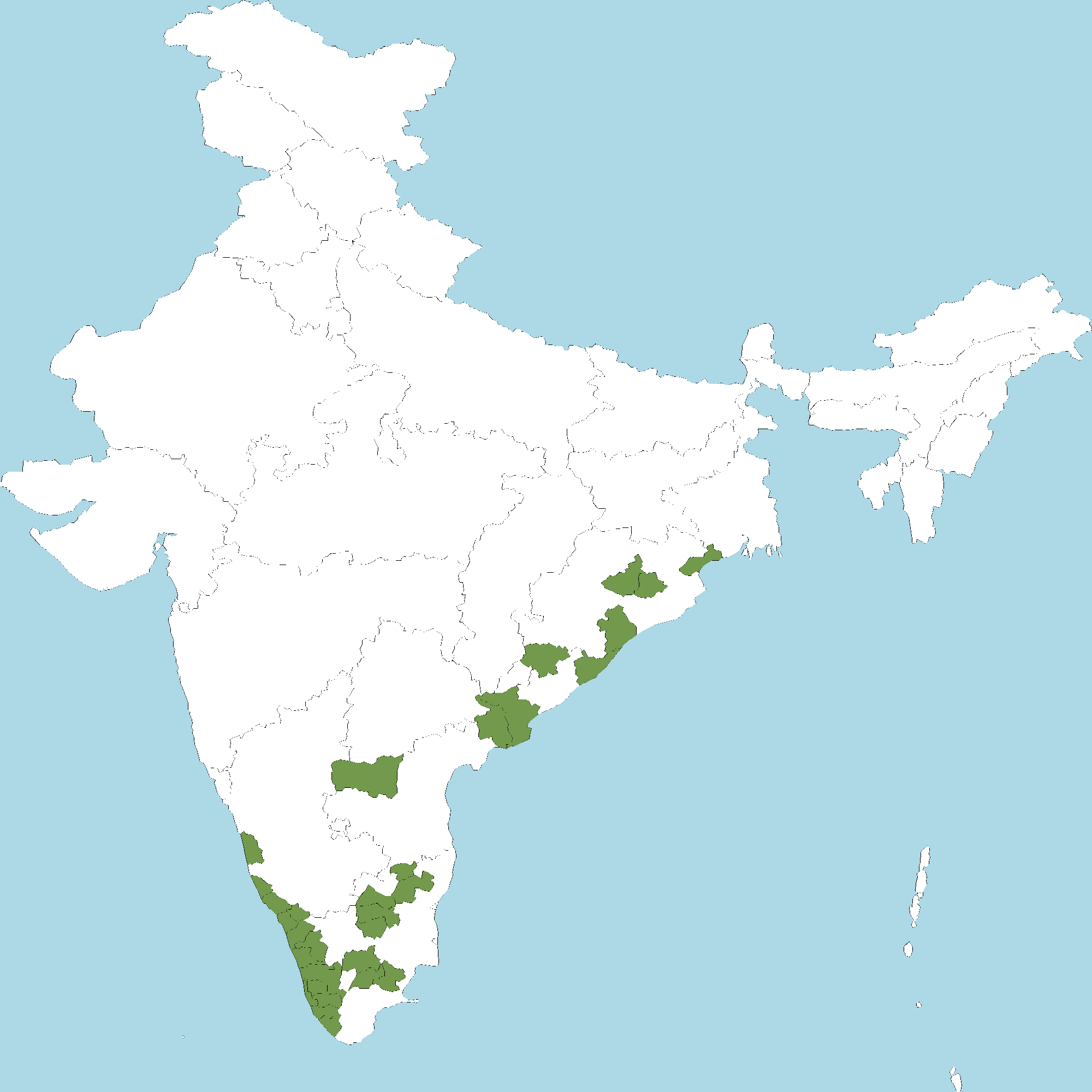 - Kerala : All districts of Kerala