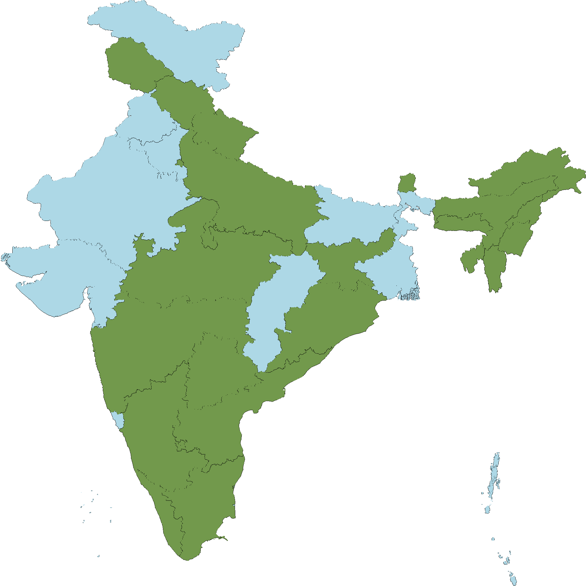 - Andhra Pradesh : Chittoor district, Srikakulam district, West Godavari district, East Godavari district, Kurnool district, Kadapa district