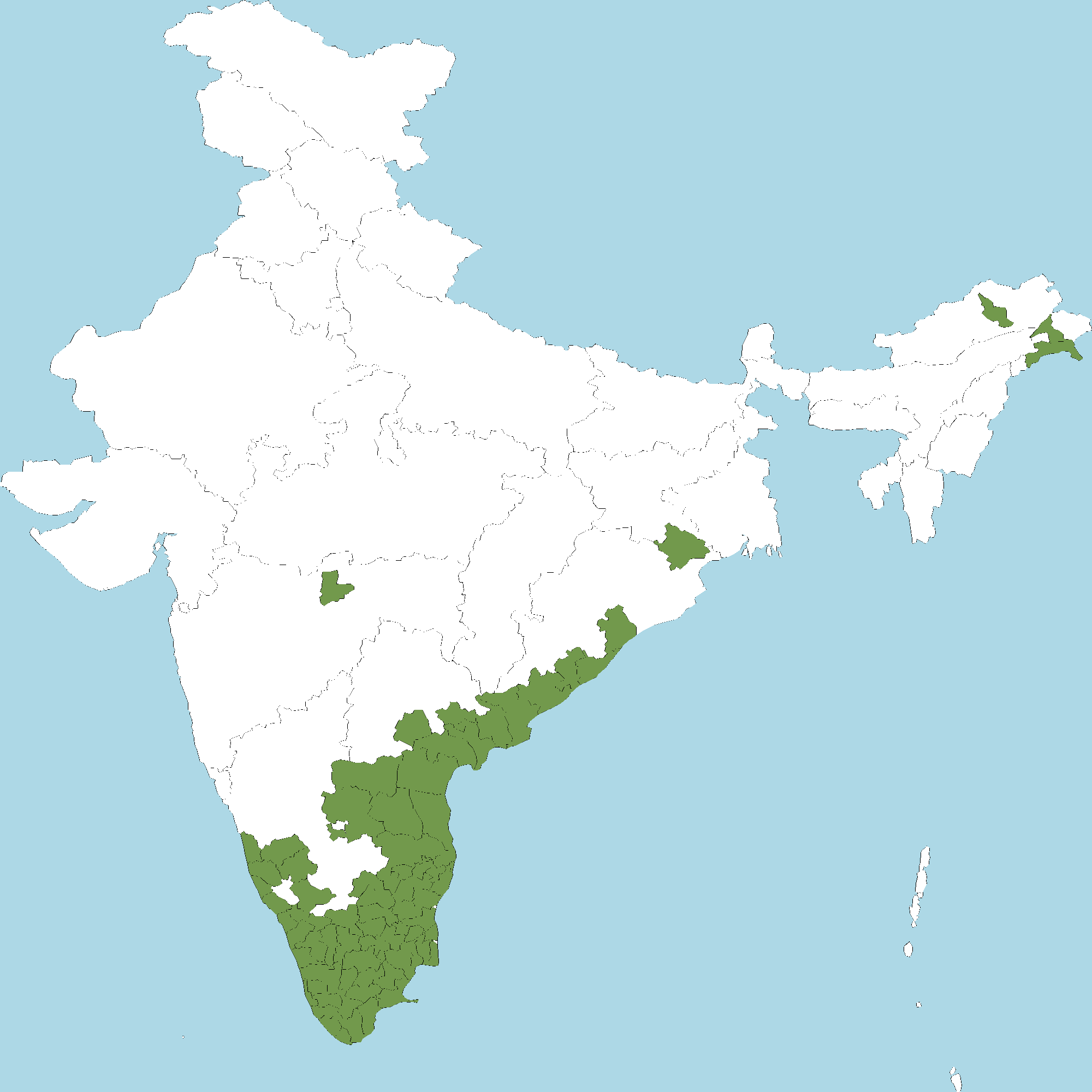 - Tamil Nadu : All districts of Tamil Nadu