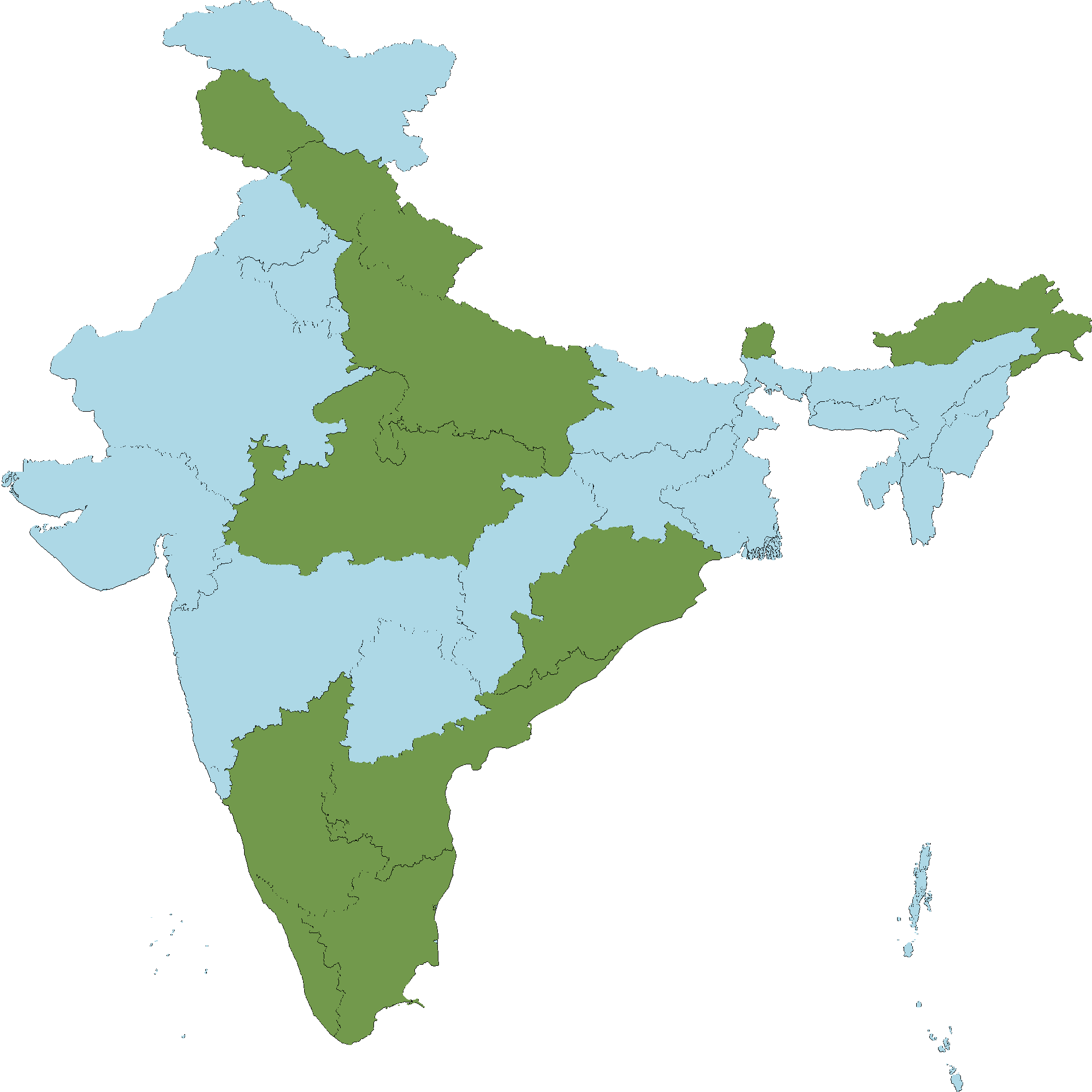 - Tamil Nadu : Salem district, Coimbatore district, Dindigul district, Kanyakumari district, Madurai district, Namakkal district, The Nilgiri district, Tirunelveli district, Tiruvannamalai district