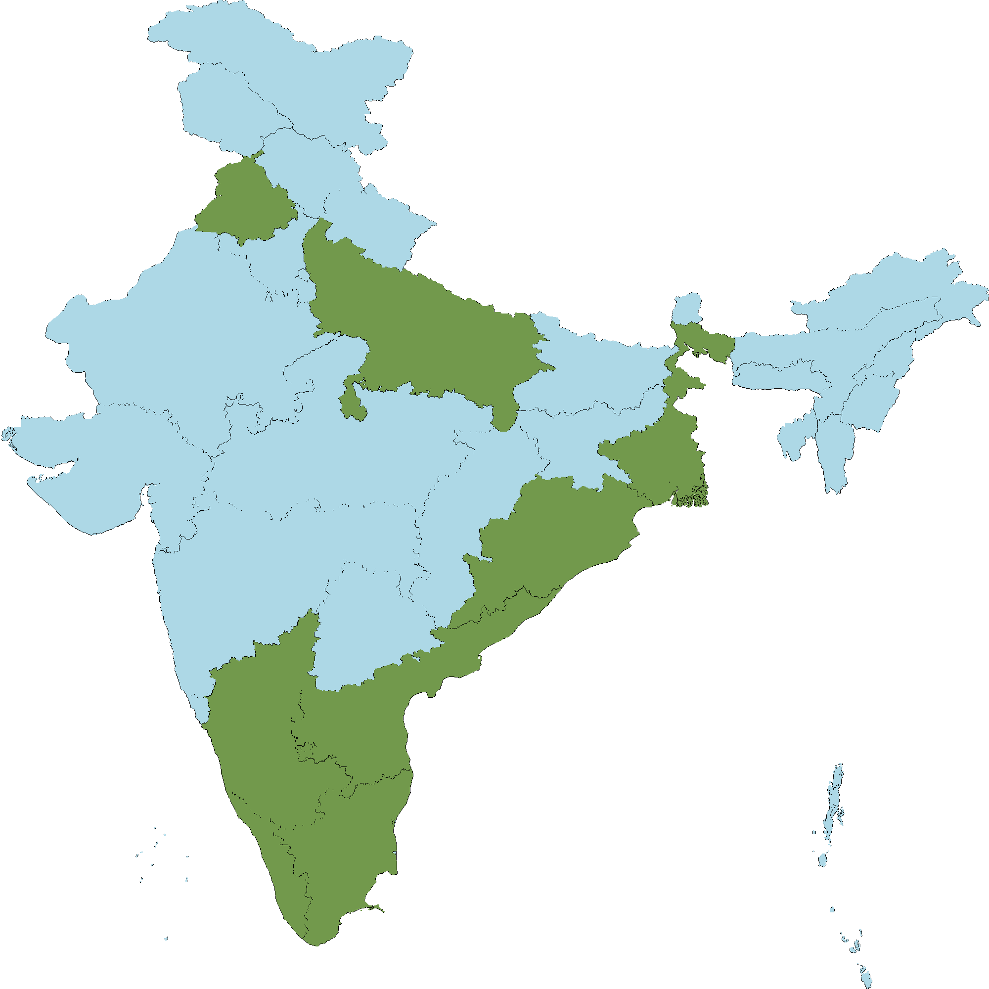 - Andhra Pradesh : Anantapur district, Prakasam district, Visakhapatnam district, West Godavari district, East Godavari district, Srikakulam district, Chittoor district