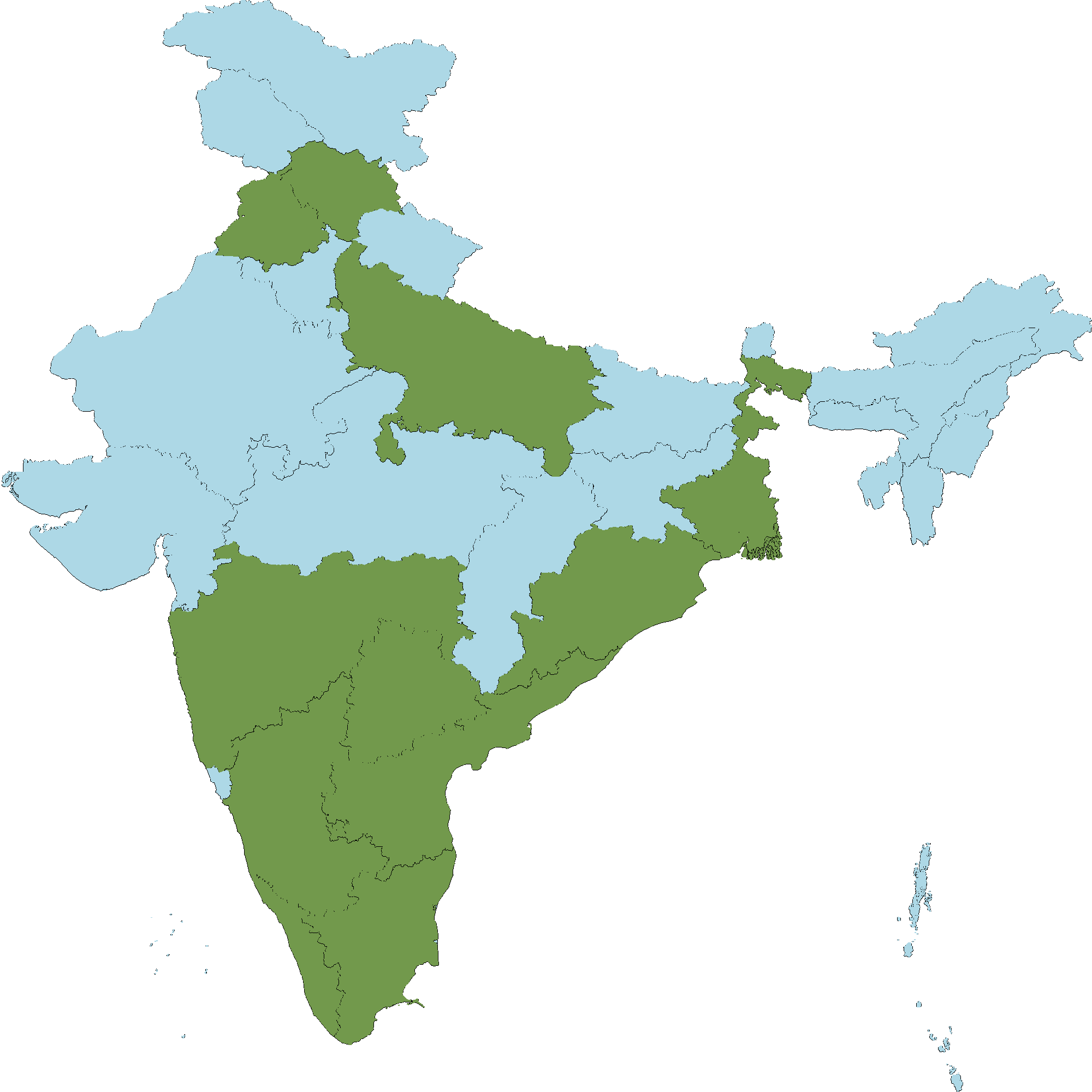 - Odisha : Angul district, Balasore district, Bargarh district, Bolangir district, Boudh district, Cuttack district, Deogarh district, Dhenkanal district, Gajapati district, Ganjam district, Kalhandi district, Kandhamal district, Kendrapara district, Keonjhar district, Khurda district, Koraput district, Malkangiri district, Mayurbhanj district, Puri district, Rayagada district,Sambalpur district, Sundergarh district