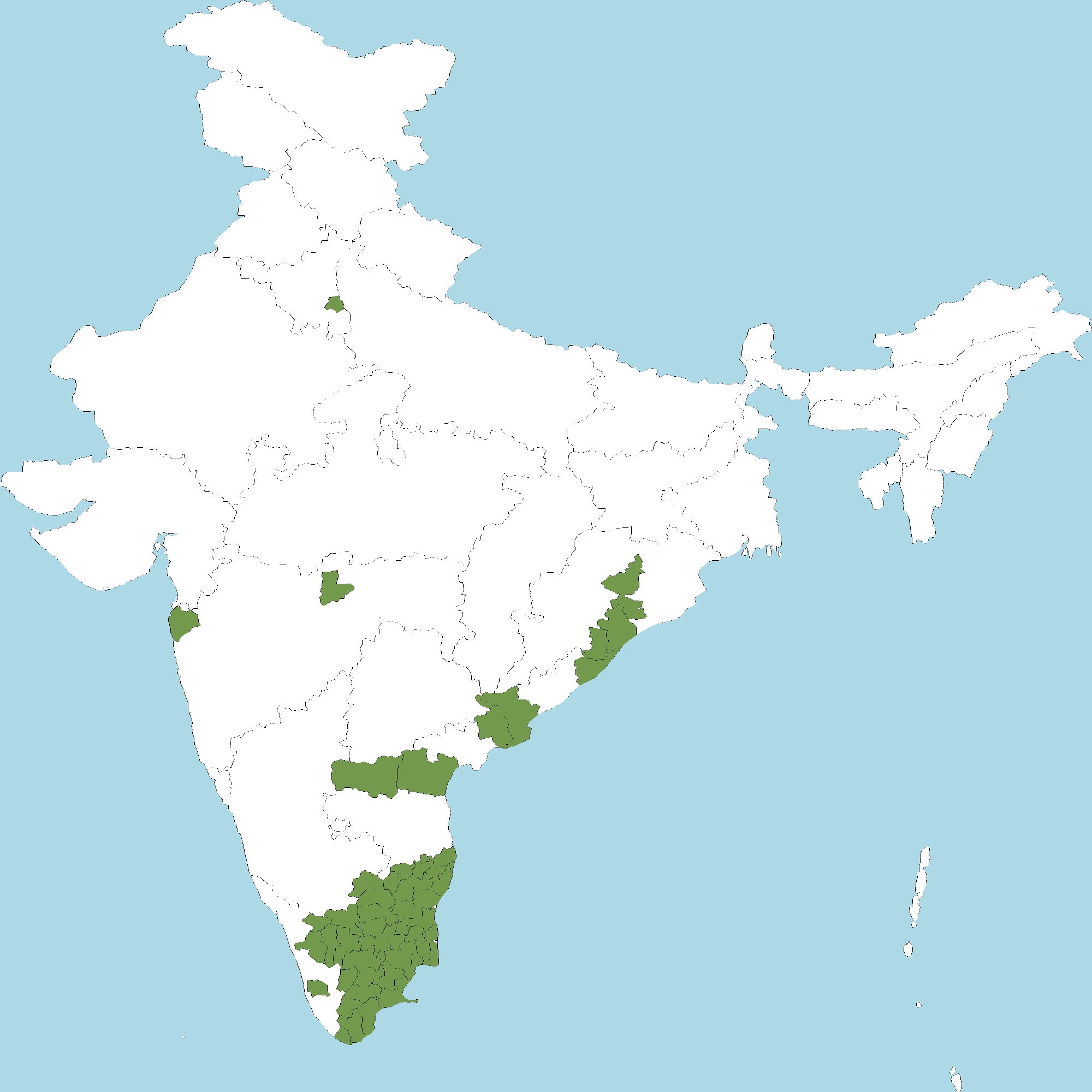 - Tamil Nadu : All districts of Tamil Nadu