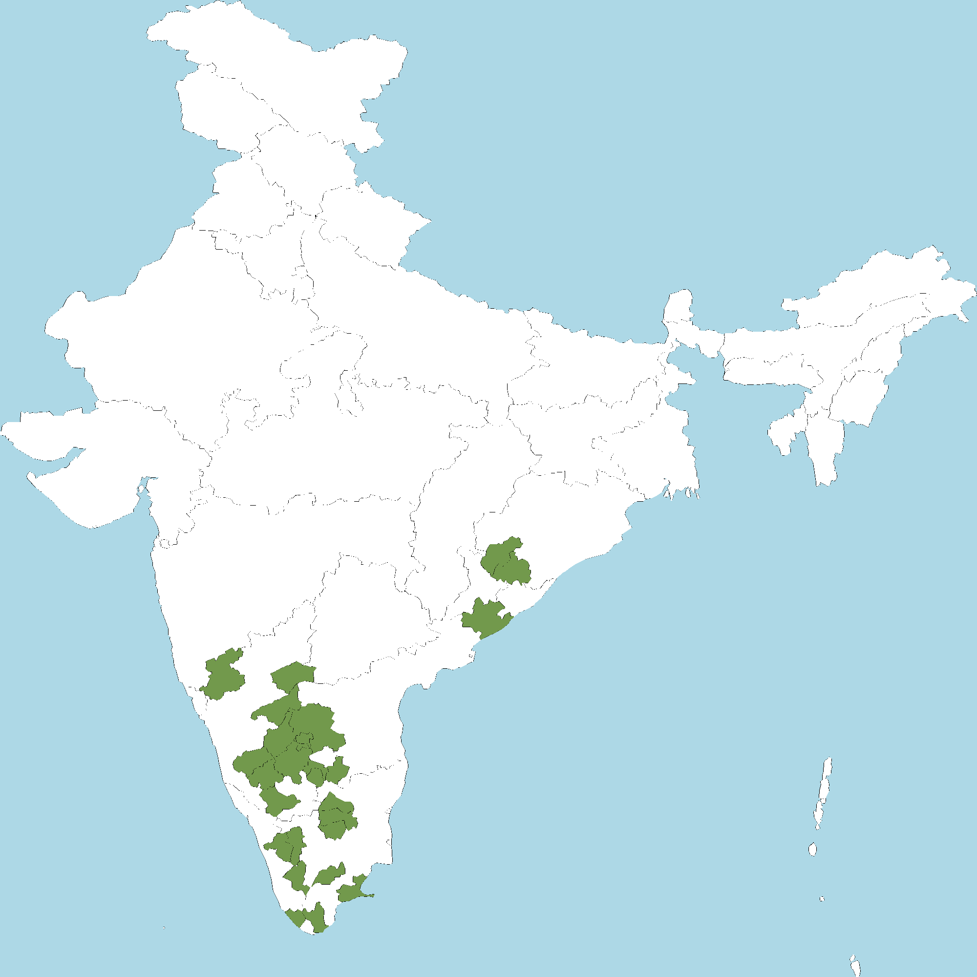 - Tamil Nadu : Salem district, Dharmapuri district, Namakkal district, Coimbatore district, Madurai district, The Nilgiri district, Ramanathapuram district, Tiruchirapalli district, Tirunelveli district