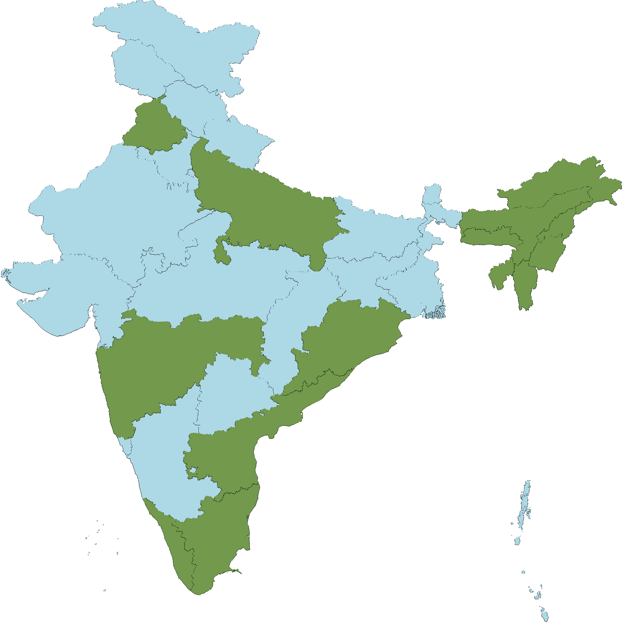 - Kerala : Kannur district, Wayanad district, Malappuram district, Palakkad district, Thrissur district, Idukki district, Alappuzha district, Pathanamthitta district, Kollam district