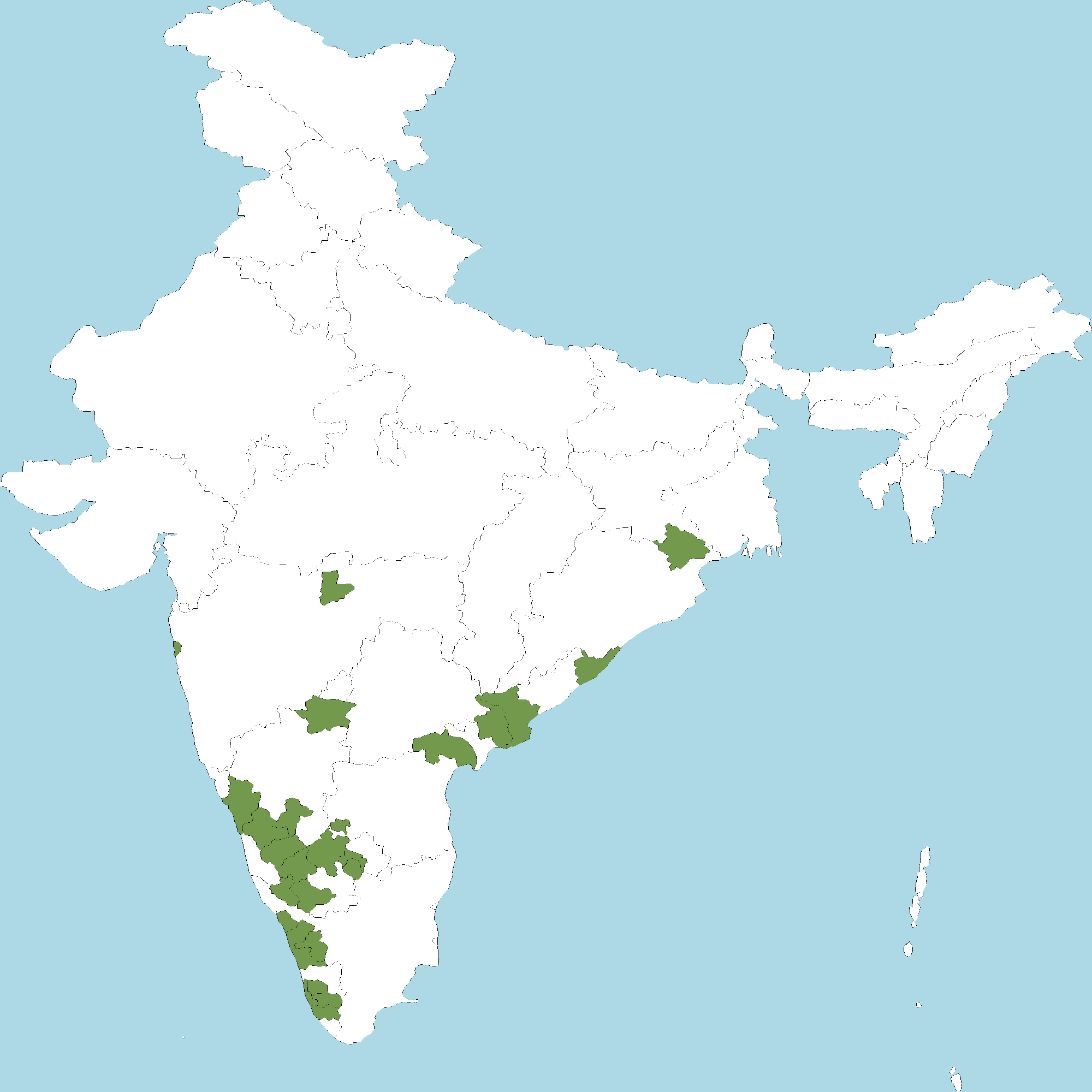 - Kerala : Kozhikode district, Malappuram district, Palakkad district, Thrissur district, Kottayam district, Alappuzha district, Pathanamthitta district, Kollam district