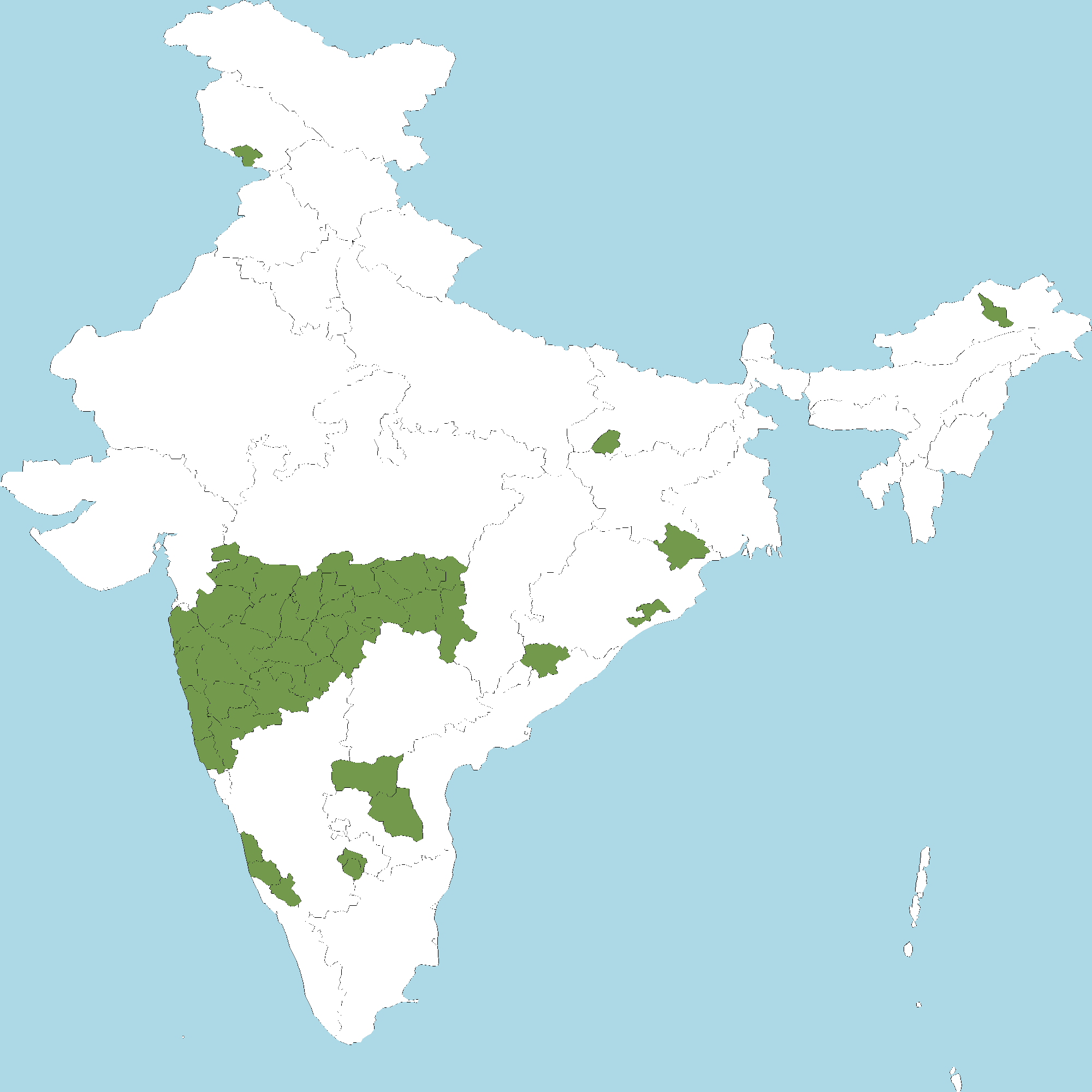 - Karnataka : Bengaluru Urban district, Bengaluru Rural district, Kodagu (Coorg) district, Udupi district, Dakshina Kannada district