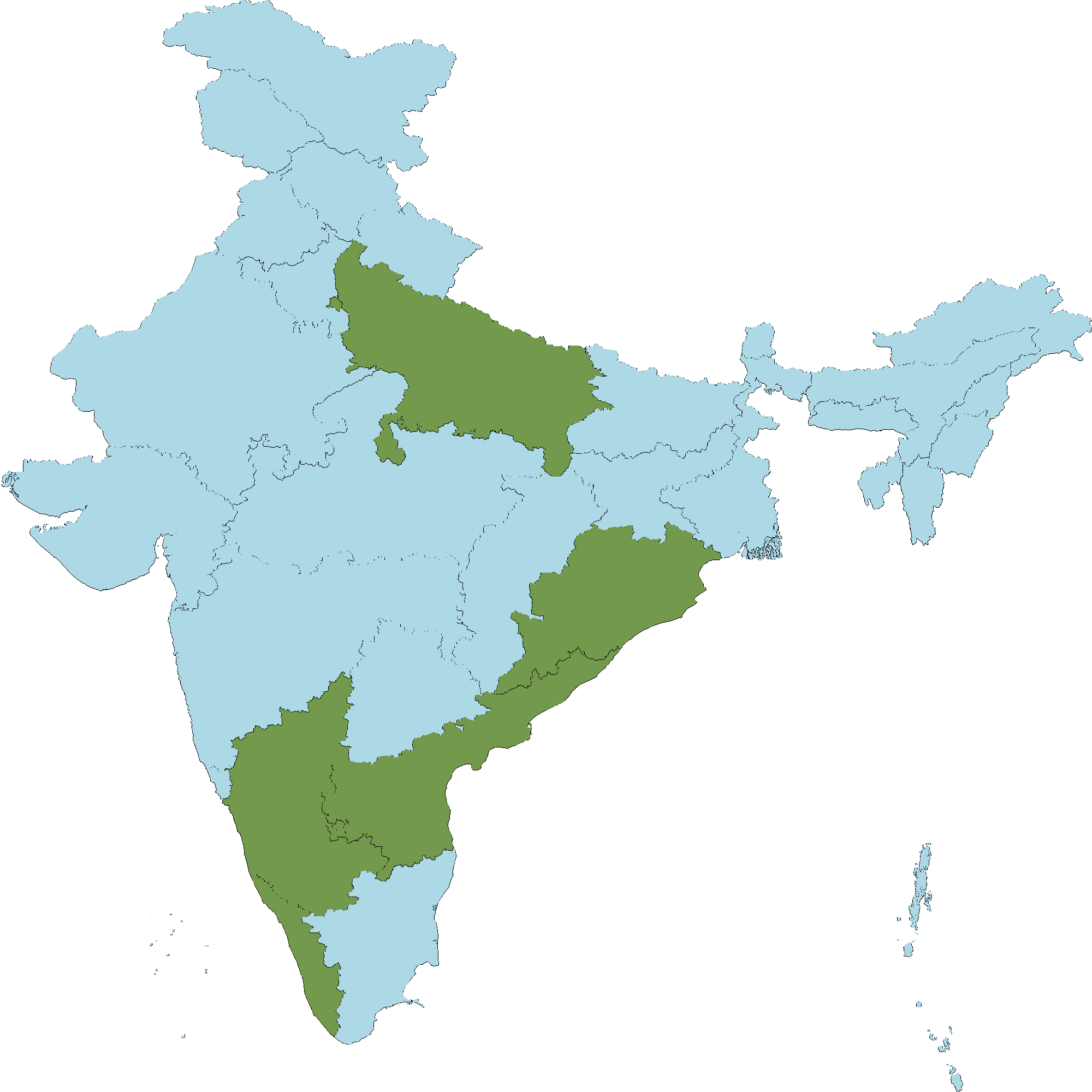 • Andhra Pradesh : Visakhapatnam district, Kurnool district, East Godavari district, Srikakulam district, Y.S.R. Kadapa district, West Godavari district
