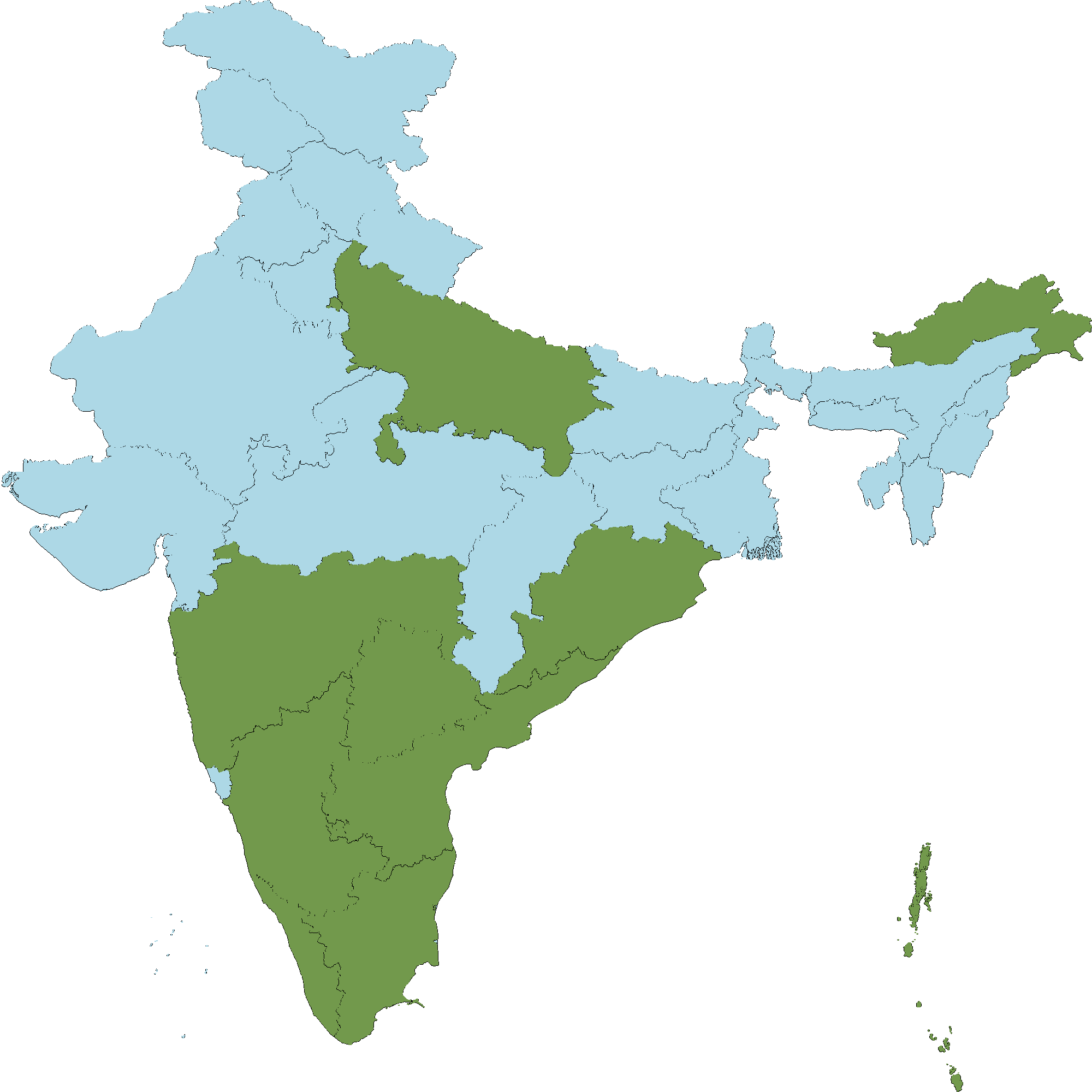 - Andhra Pradesh : Anantapur district, Chittoor district, Kadapa district, East Godavari district, Guntur district, Krishna district, Kurnool district, Nellore district, Prakasam district, Srikakulam district, Vishakapatnam district, Vizianagaram district, West Godavari district