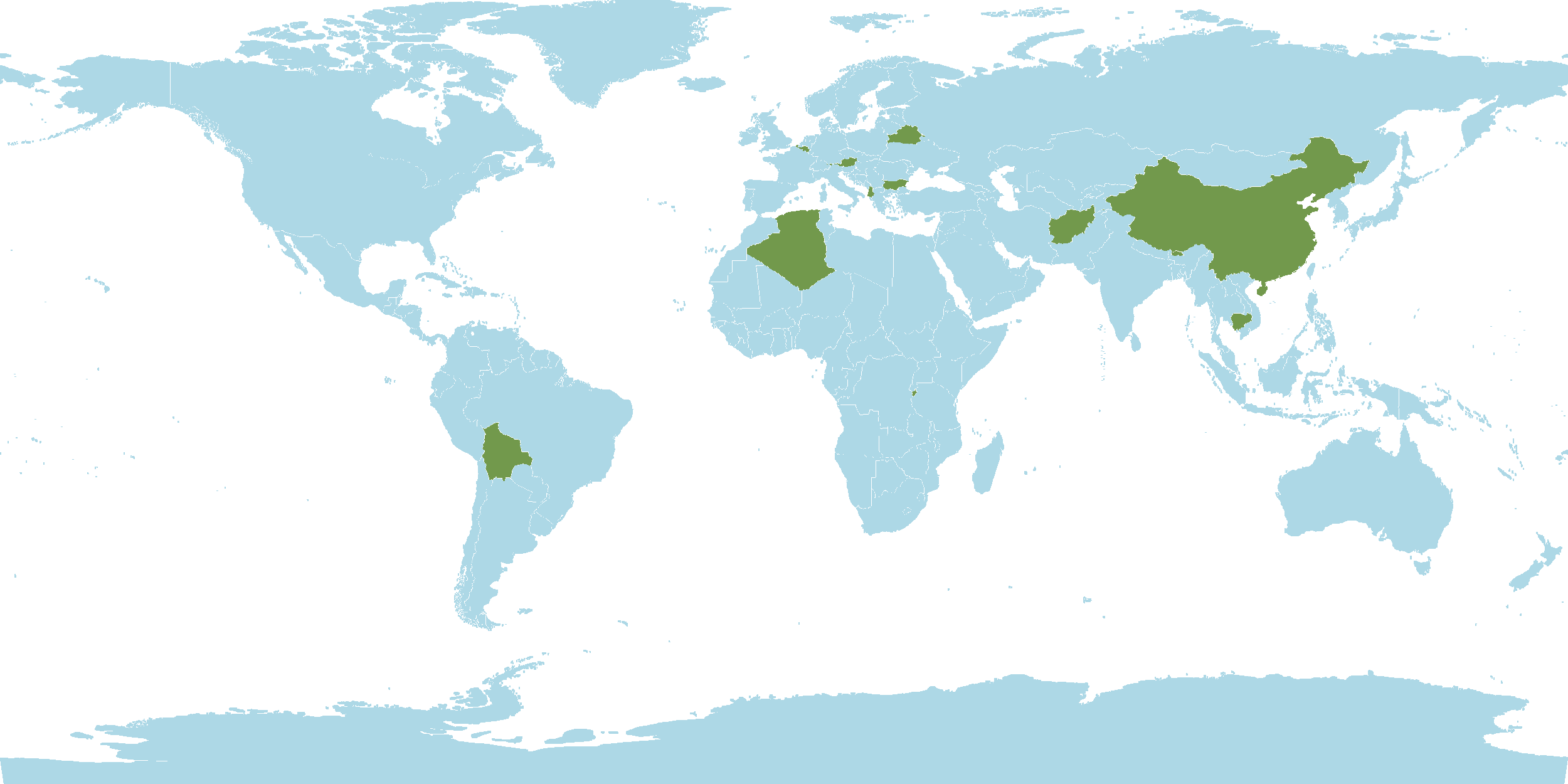 - Native : Afghanistan, Alabama, Alaska, Albania, Algeria, Altay, Arizona, Arkansas, Austria, Azores, Baleares, Baltic States, Belarus, Belgium, Bhutan, Bolivia, British Columbia, Bulgaria, Burundi, California, Cambodia, Canary Islands, Central European Rus, China,