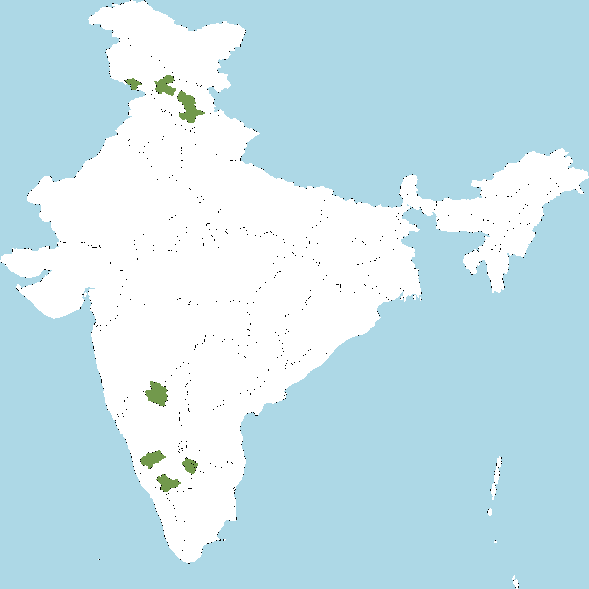 - Karnataka : Bengaluru Urban district, Bengaluru Rural district, Chikkamagaluru district, Mysuru district, Vijayapura (Bijapur) district
