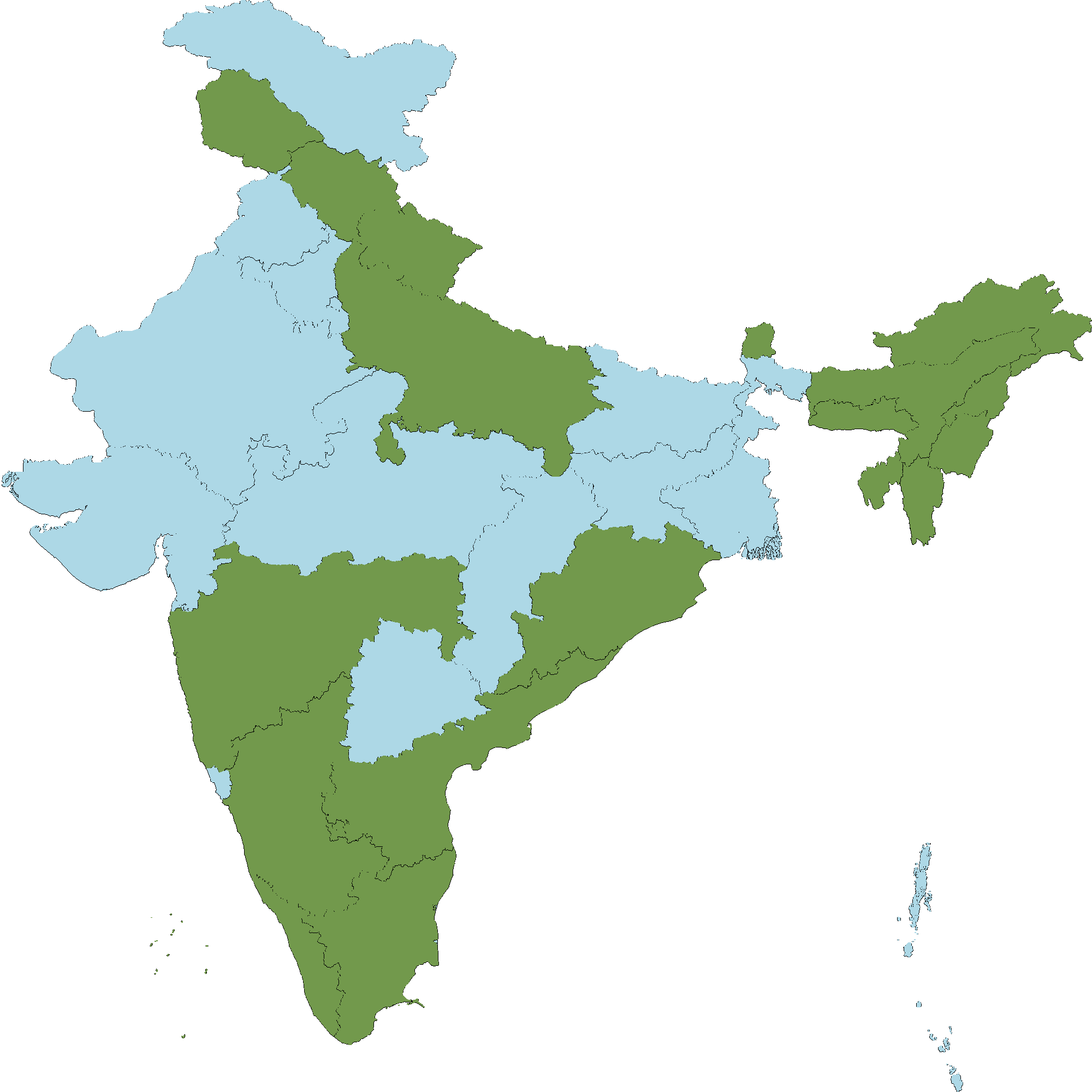 - Karnataka : Bengaluru district, Belagavi district, Ballari district, Chikkamagaluru district, Davanagare district, Dharwad district, Hassan district, Mysuru district, Shivamogga district, Tumakuru district, Udupi district, Uttara Kannada district, Dakshina Kannada district