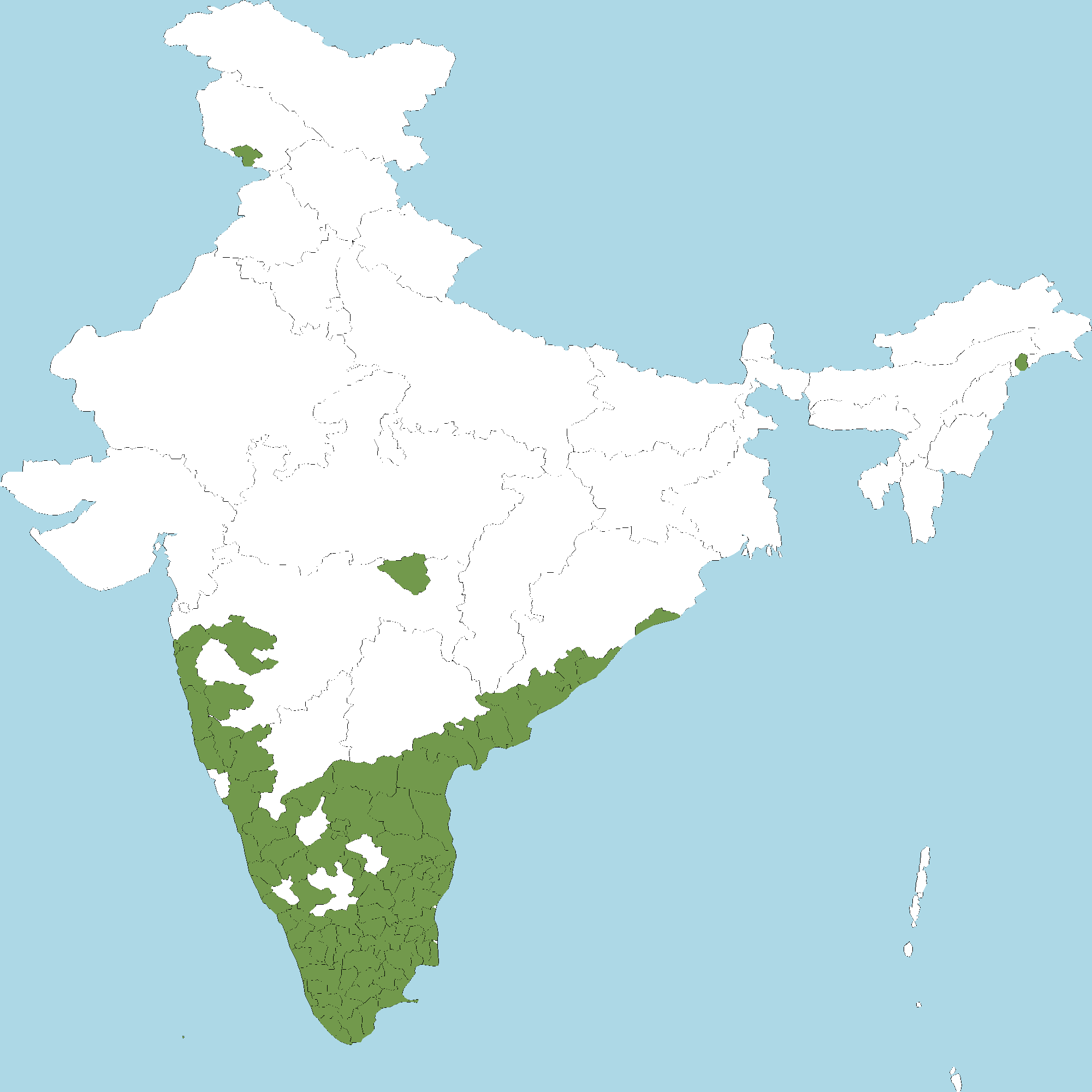 - Kerala : All districts of Kerala