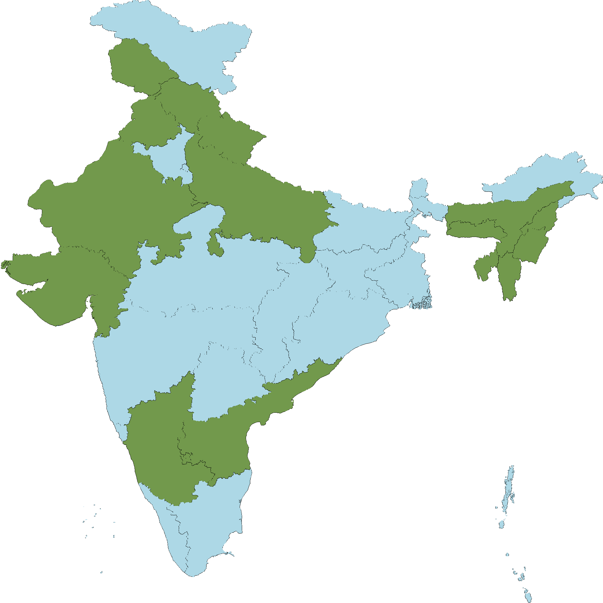 Andhra Pradesh : Vishakapatnam district  Karnataka : Ballari district, Bengaluru district, Vijayapura (Bijapur) district, Chitradurga district, Davanagare district, Kalaburagi (Gulbarga) district, Mysuru district, Raichur district  Gujarat : Somnath  Uttarakhand : Uttarakhand  Himachal Pradesh : Kangra district, Kinnaur district, Mandi district, Shimla district, Solan district  Meghalaya : Meghalaya  Assam : Assam  Nagaland : Nagaland  Uttar Pradesh : Uttar Pradesh  Punjab : Punjab  Rajasthan : Jaisalmer district, Barmer district, Bikaner district, Jodhpur district  Jammu and Kashmir : Jammu and Kashmir  Mizoram : Mizoram  Manipur : Manipur  Tripura : Tripura