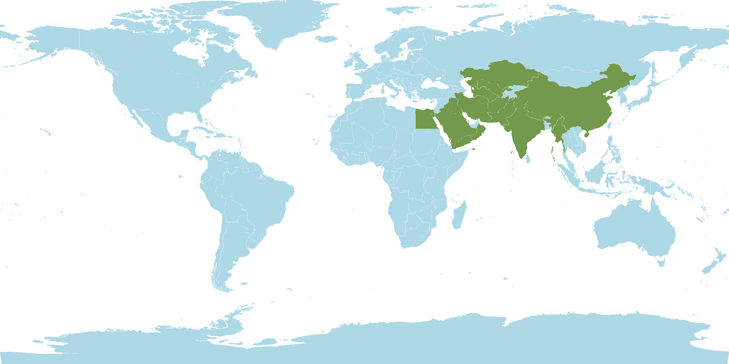 Native : Afghanistan, China, Egypt, Gulf States, India, Inner Mongolia, Iran, Iraq, Kazakhstan, Kuwait, Myanmar, Nepal, Oman, Pakistan, Saudi Arabia, Sinai, Tadzhikistan, Turkmenistan, Uzbekistan, Xinjiang, Yemen  Exotic/Native : Native  World Distribution : Egypt to Central Asia and Myanmar  Conservation Status : Not Evaluated (NE)  Literature :