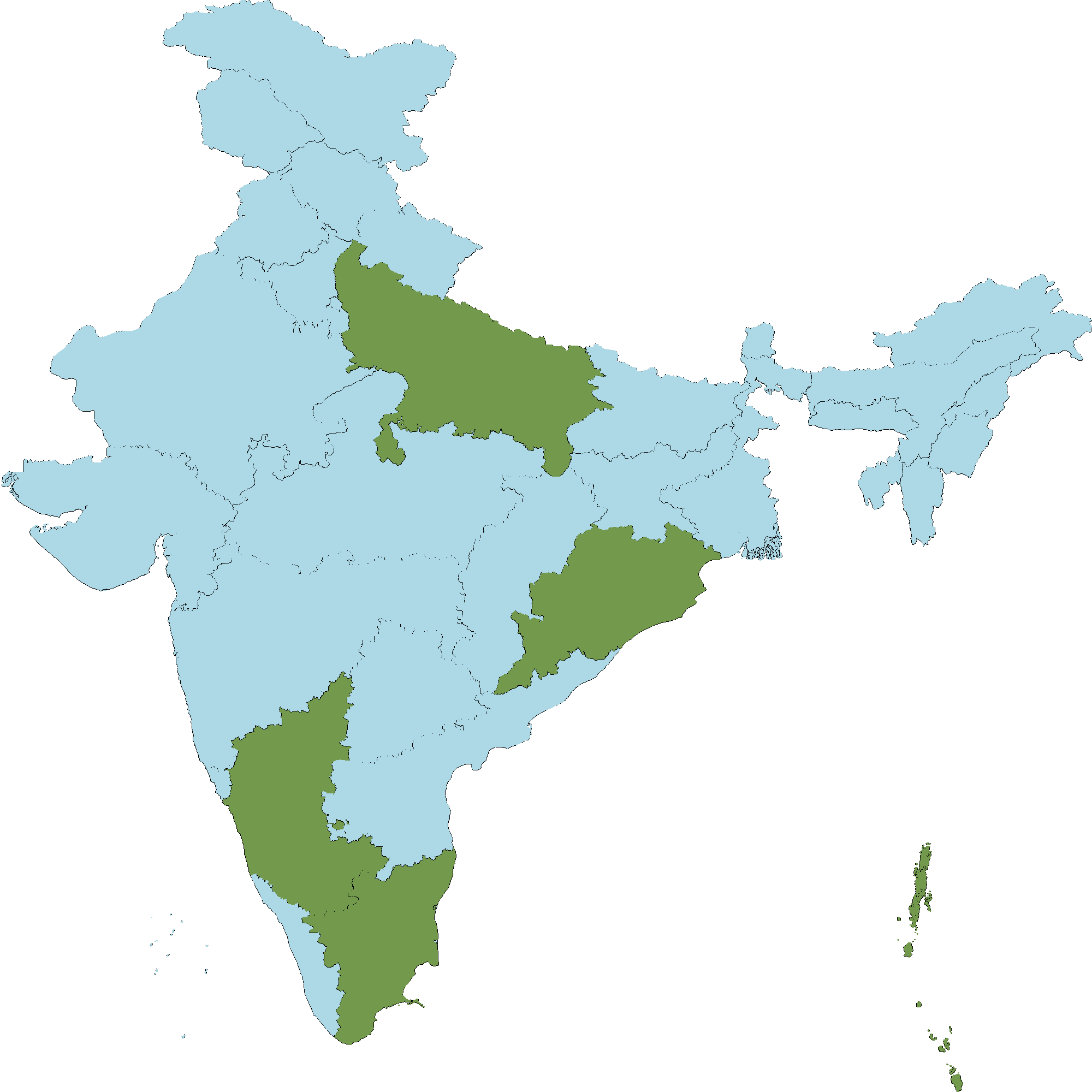 - Andaman and Nicobar Islands : North and Middle Andaman,South Andaman,Ritchie\'s Archipelago taluk (Havelock Island),Rutland,Baratang and South Cinque Islands