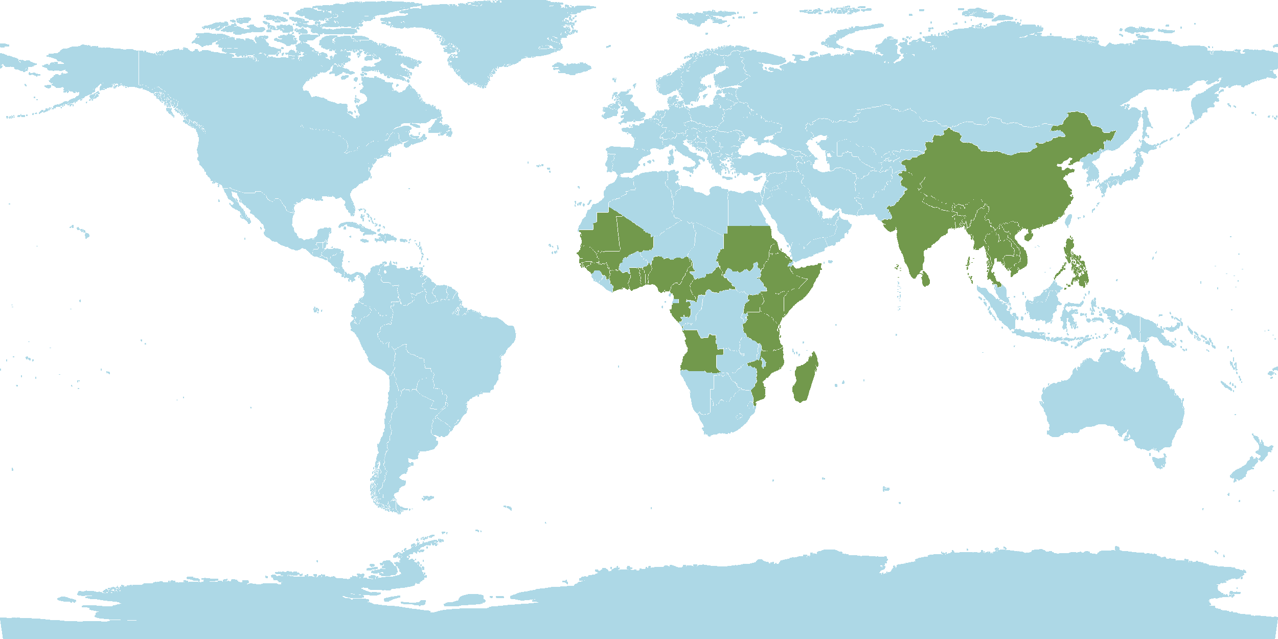 - World Distribution : Andaman and Nicobar Islands, Angola, Bangladesh, Benin, Bhutan, Bismarck Archipelago, Borneo, Cambodia, Cameroon, Central African Republic, China, Eritrea, Ethiopia, Gabon, Gambia, Ghana, Guinea, Guinea-Bissau, India, Ivory Coast, Jawa, Kenya, Laos, Lesser Sunda Islands, Madagascar, Malaya, Mali, Maluku, Mauritania, Mozambique, Myanmar, Nepal, New Guinea, Nigeria, Philippines, Senegal, Somalia, Sri Lanka, Sudan, Sulawesi, Sumatera, Tanzania, Thailand, Togo, Uganda, Vietnam, Zaïre