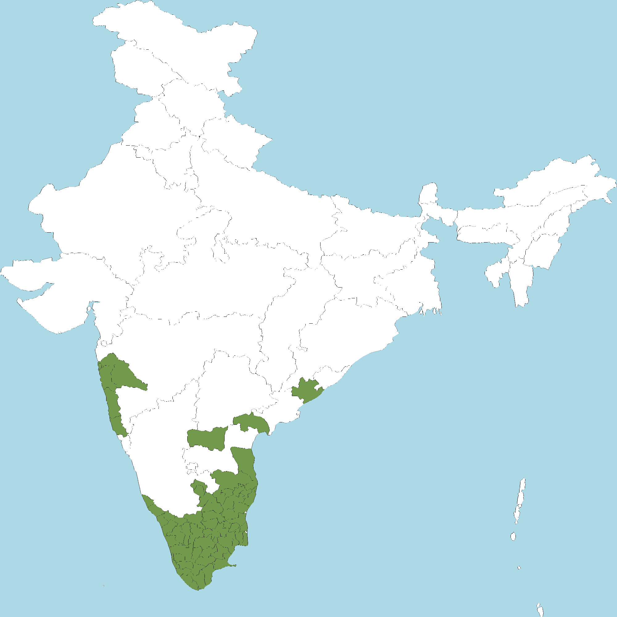 - Kerala : All districts of Kerala