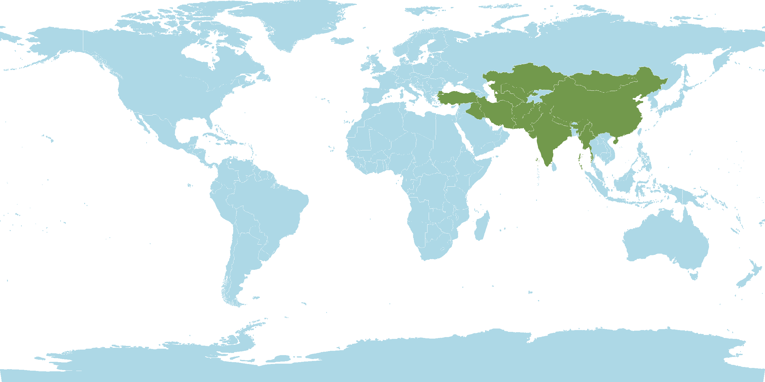 - World Distribution : Afghanistan, China, India, Inner Mongolia, Iran, Iraq, Kazakhstan, Kirgizstan, Mongolia, Myanmar, Nepal, Pakistan, Qinghai, Tadzhikistan, Tibet, Transcaucasus, Turkey, Turkmenistan, Uzbekistan, Xinjiang
