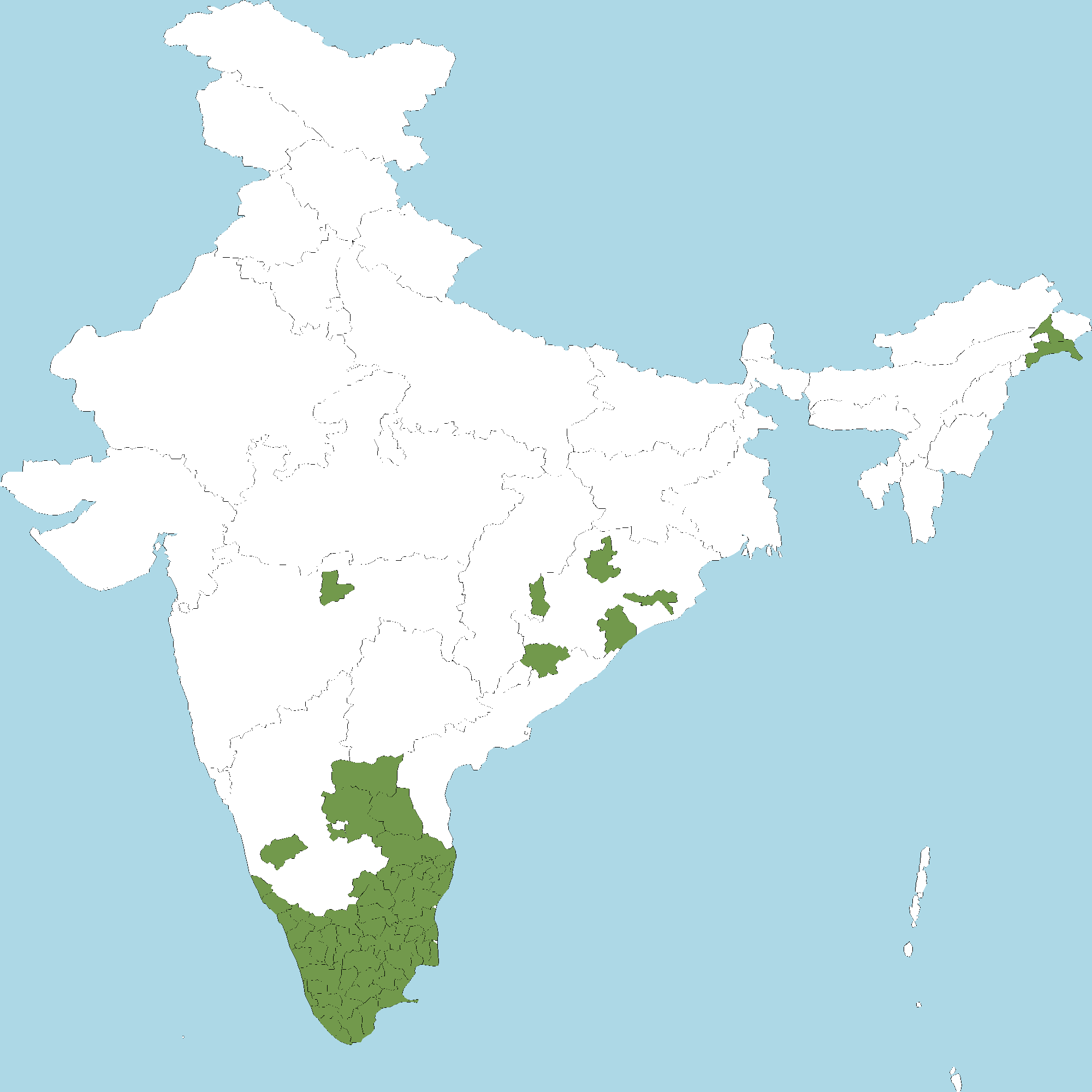 - Kerala : All districts of Kerala