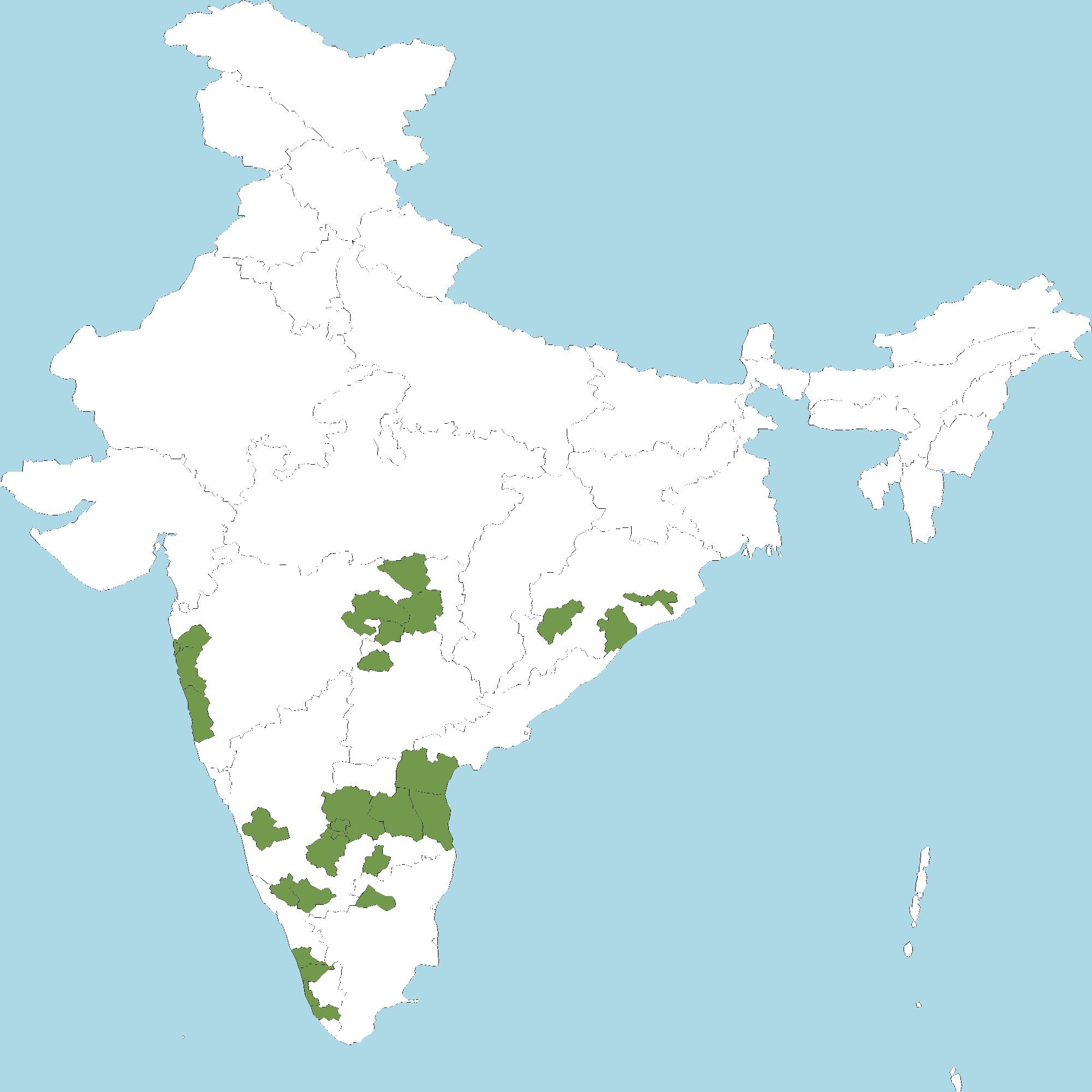 - Karnataka : Kolar district, Kodagu (Coorg) district, Mysuru district, Shivamogga district, Tumakuru district
