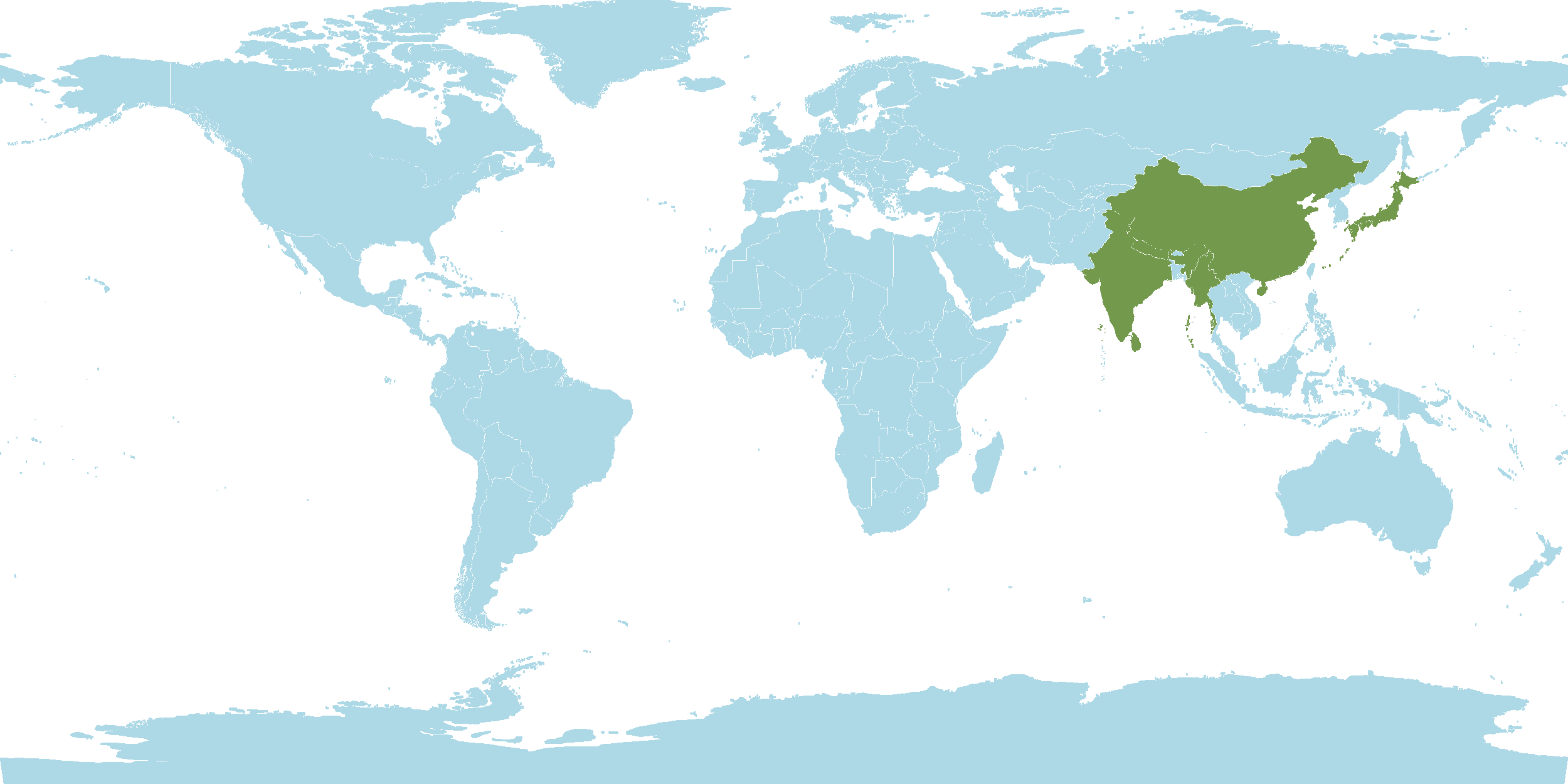 • World Distribution : India, Nepal, Sri Lanka, Myanmar, Japan, Java, China, Siam