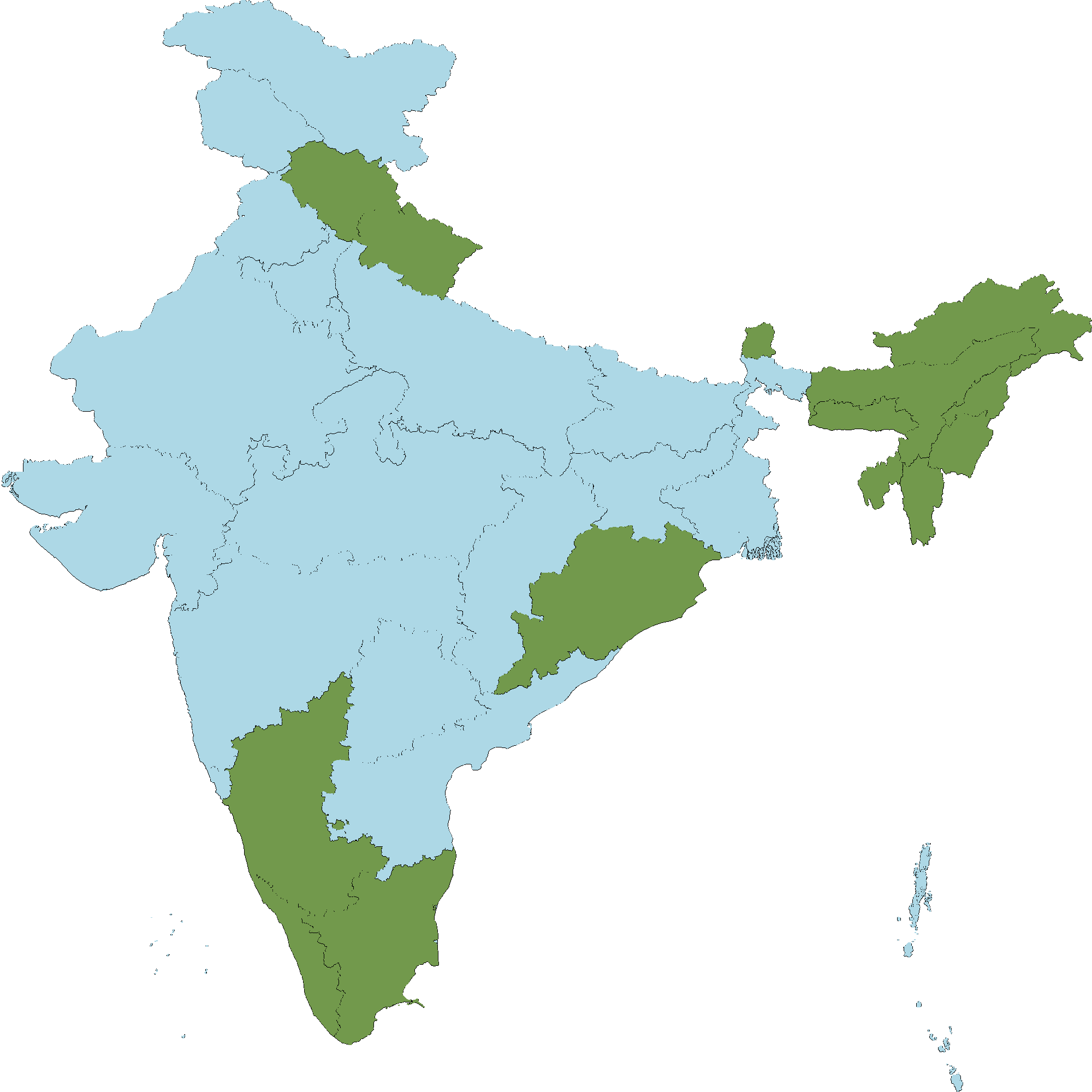 - Karnataka : Chikkamagaluru district, Hassan district, Kodagu (Coorg) district