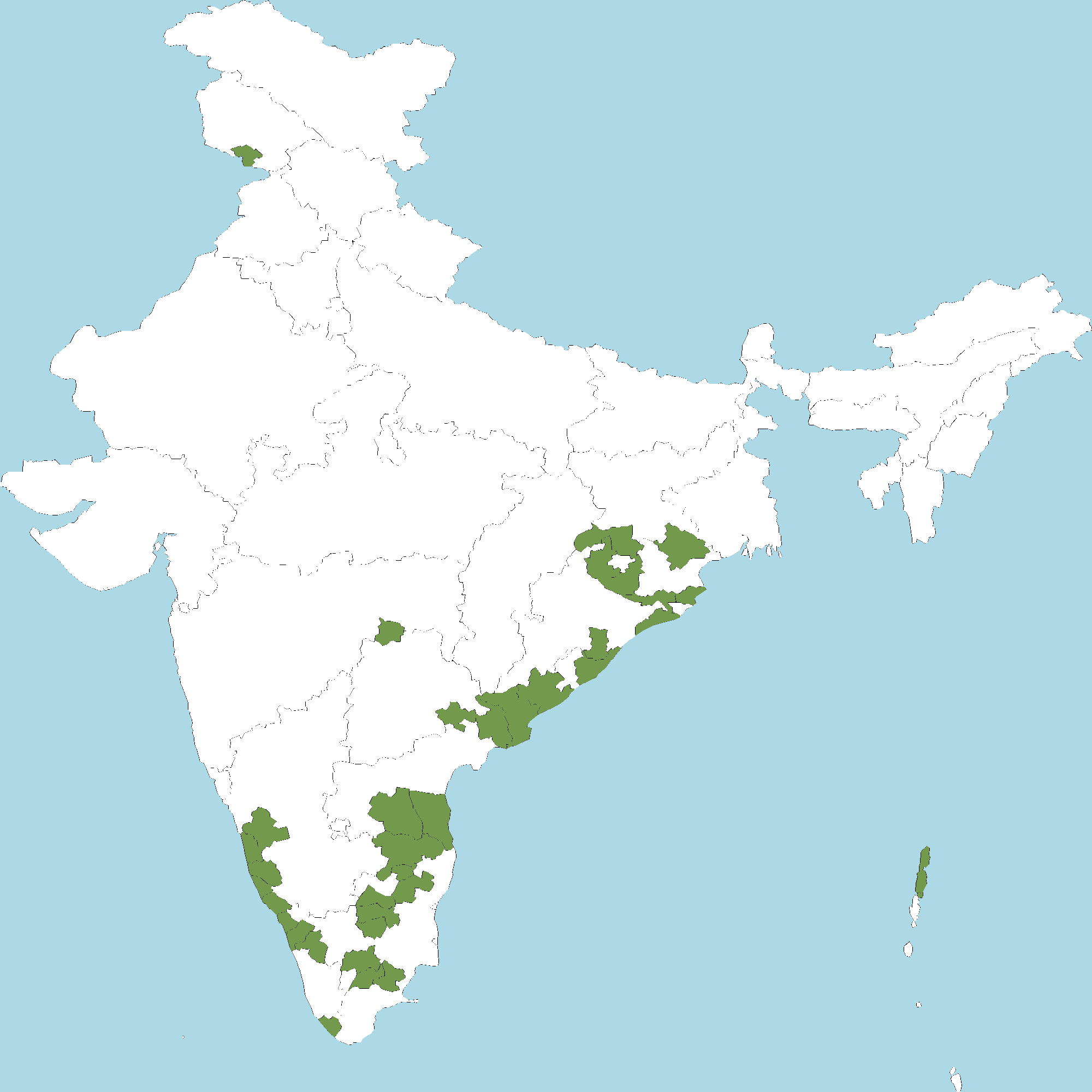 - Andhra Pradesh : Chittoor district, Visakhapatnam district, West Godavari district, S.P.S. Nellore district, Y.S.R. Kadapa district, East Godavari district, Srikakulam district