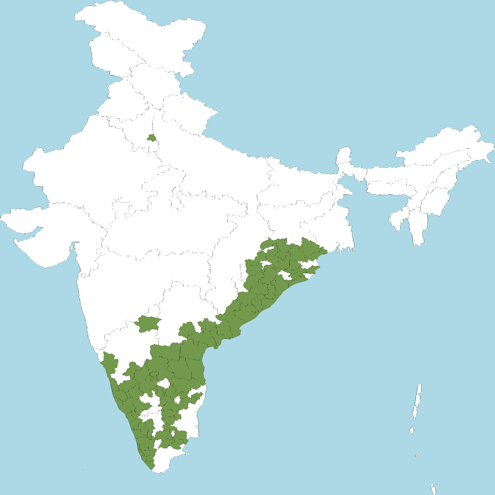 - Andhra Pradesh : Anantapur district, Chittoor district, Y.S.R. Kadapa district, East Godavari district, Guntur district, Krishna district, Kurnool district, S.P.S. Nellore district, Prakasam district, Srikakulam district, Visakhapatnam district, Vizianagaram district, West Godavari district