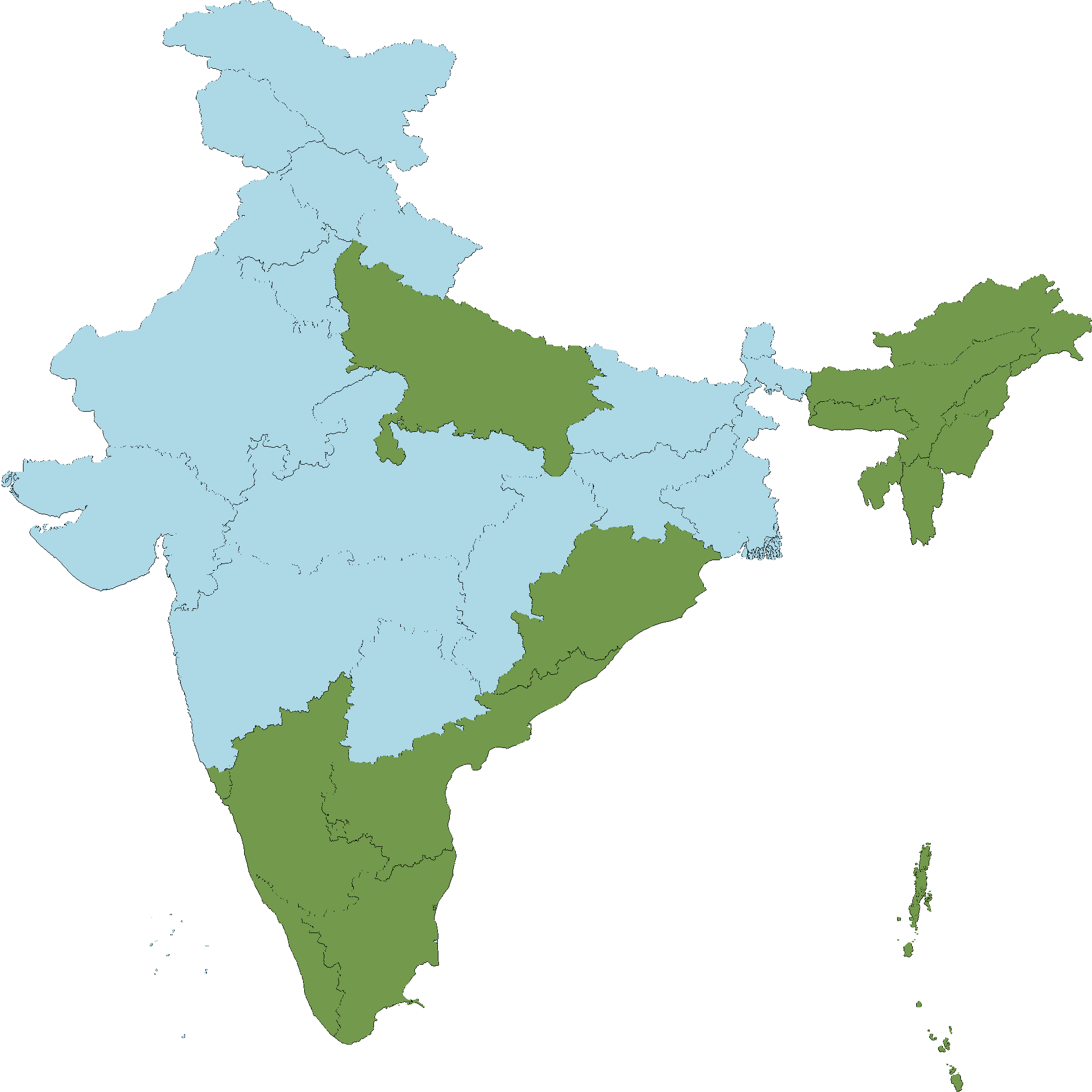 - Karnataka : Belagavi district, Chikkamagaluru district, Dakshina Kannada district, Hassan district, Kodagu (Coorg) district, Mysuru district, Shivamogga district, Uttara Kannada district