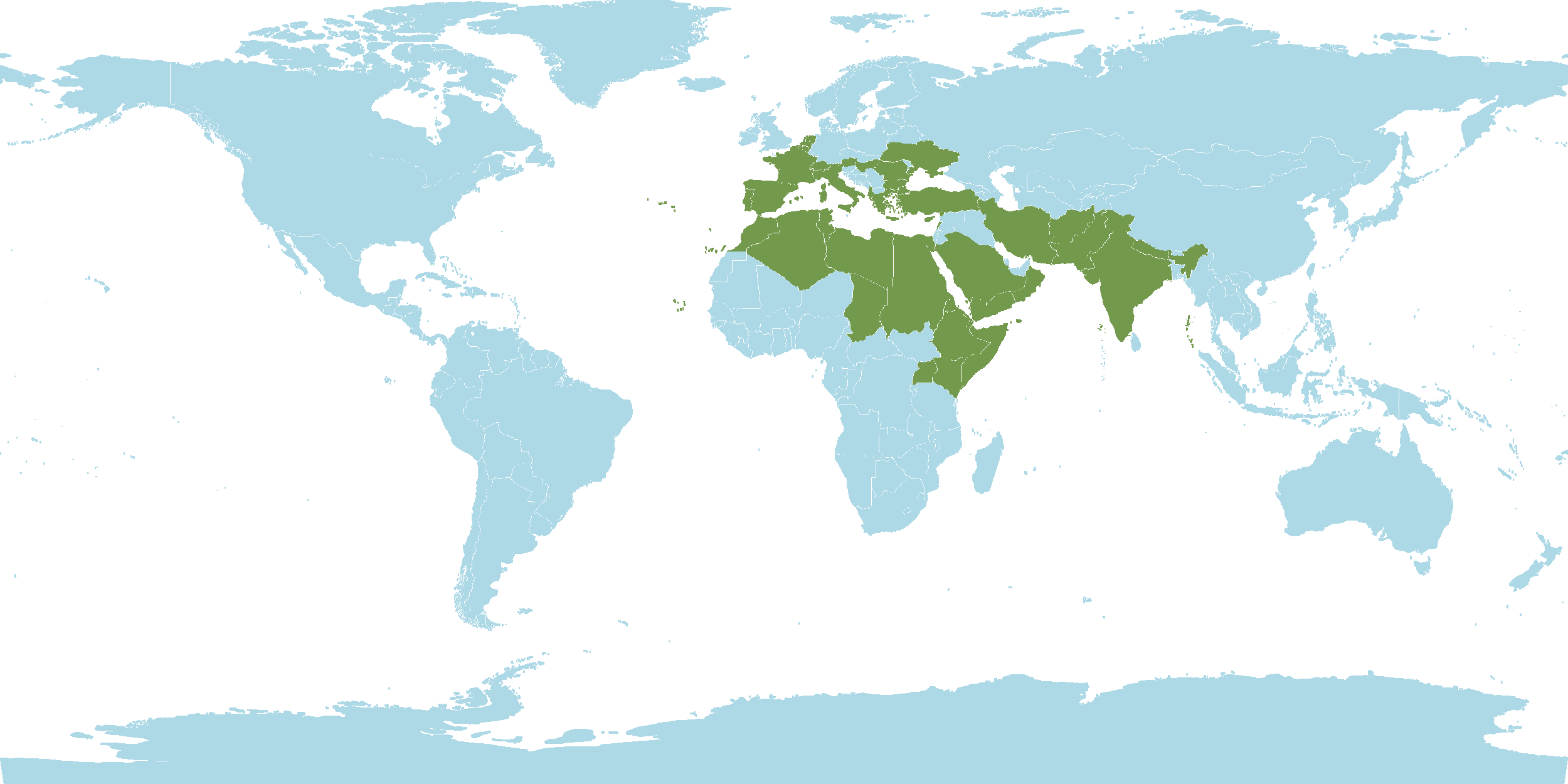 - Native : Afghanistan, Albania, Algeria, Austria, Azores, Baleares, Belgium, Bulgaria, Canary Islands, Cape Verde, Chad, Corse, Cyprus, Djibouti, East Aegean Islands, Egypt, Eritrea, Ethiopia, France, Greece, Hungary, India, Iran, Italy, Kenya, Kriti, Krym, Lebanon