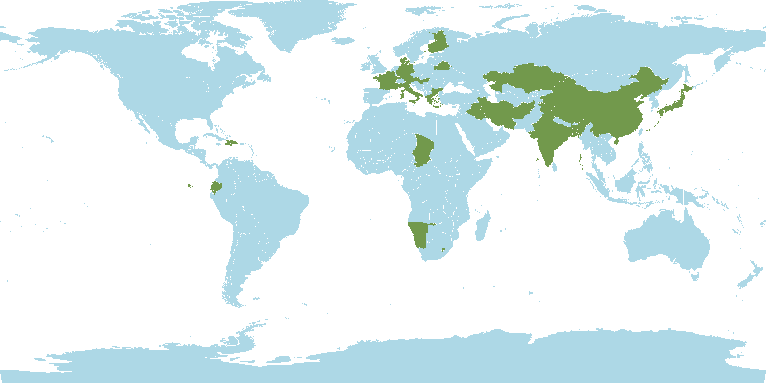 - Native : Afghanistan, Altay, Austria, Azores, Baltic States, Belarus, Belgium, Bulgaria, Central European Rus, Chad, China, Czechoslovakia, Denmark, East Aegean Is., East European Russia, Germany, Greece, Hungary, India, Iran, Iraq, Irkutsk, Italy, Kazakhstan, Kir