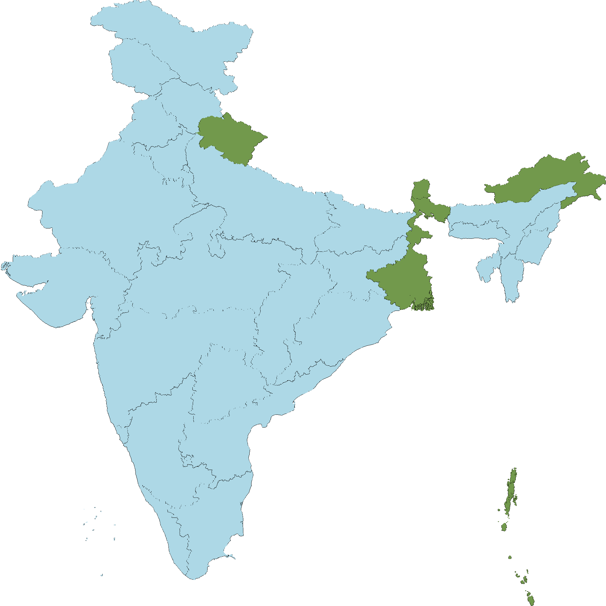 • Andaman and Nicobar Islands : North and Middle Andaman,South Andaman,Long and Rutland Islands