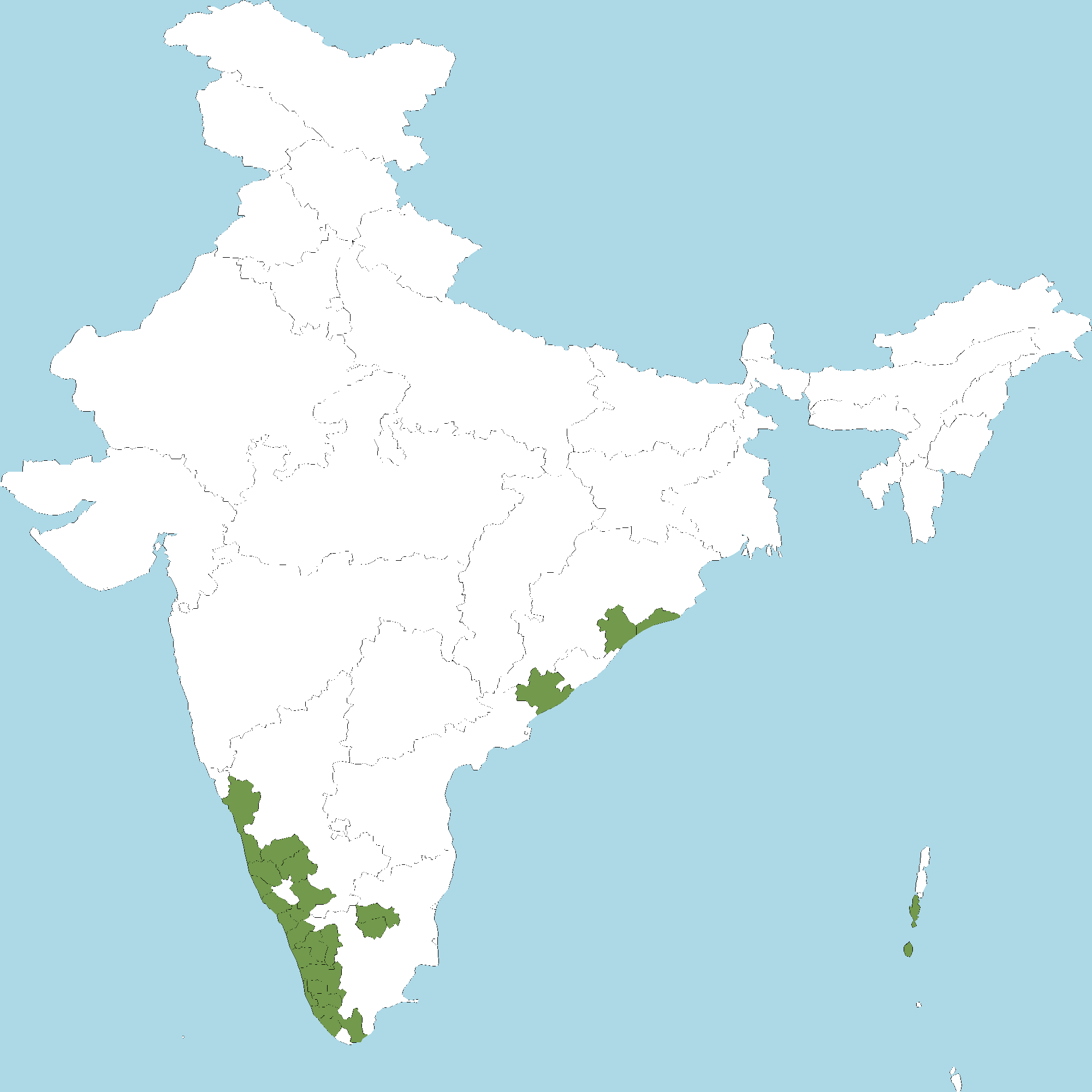 - Kerala : All districts of Kerala
