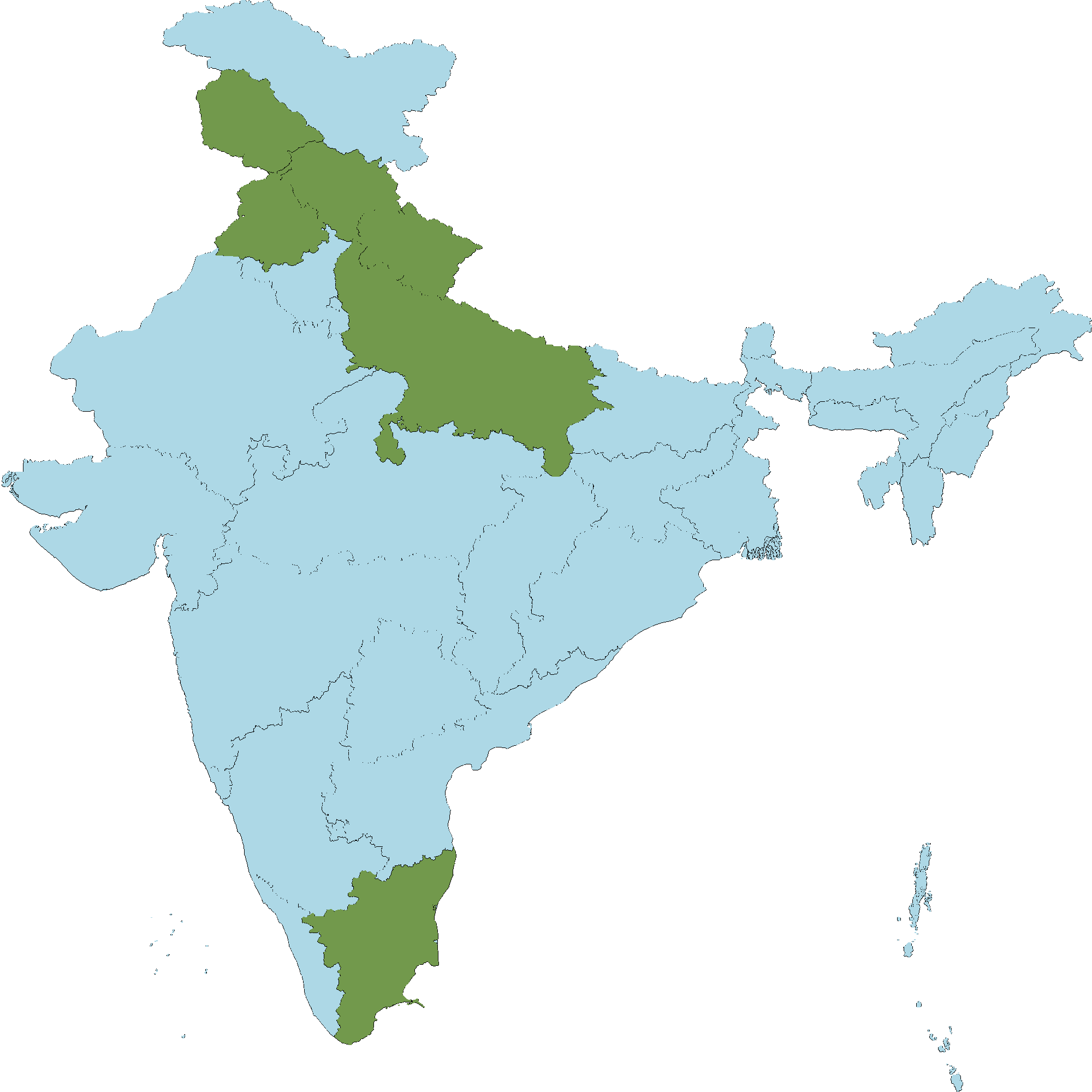 • Tamil Nadu : Salem district, Tiruchirapalli district, Namakkal district, Vellore district