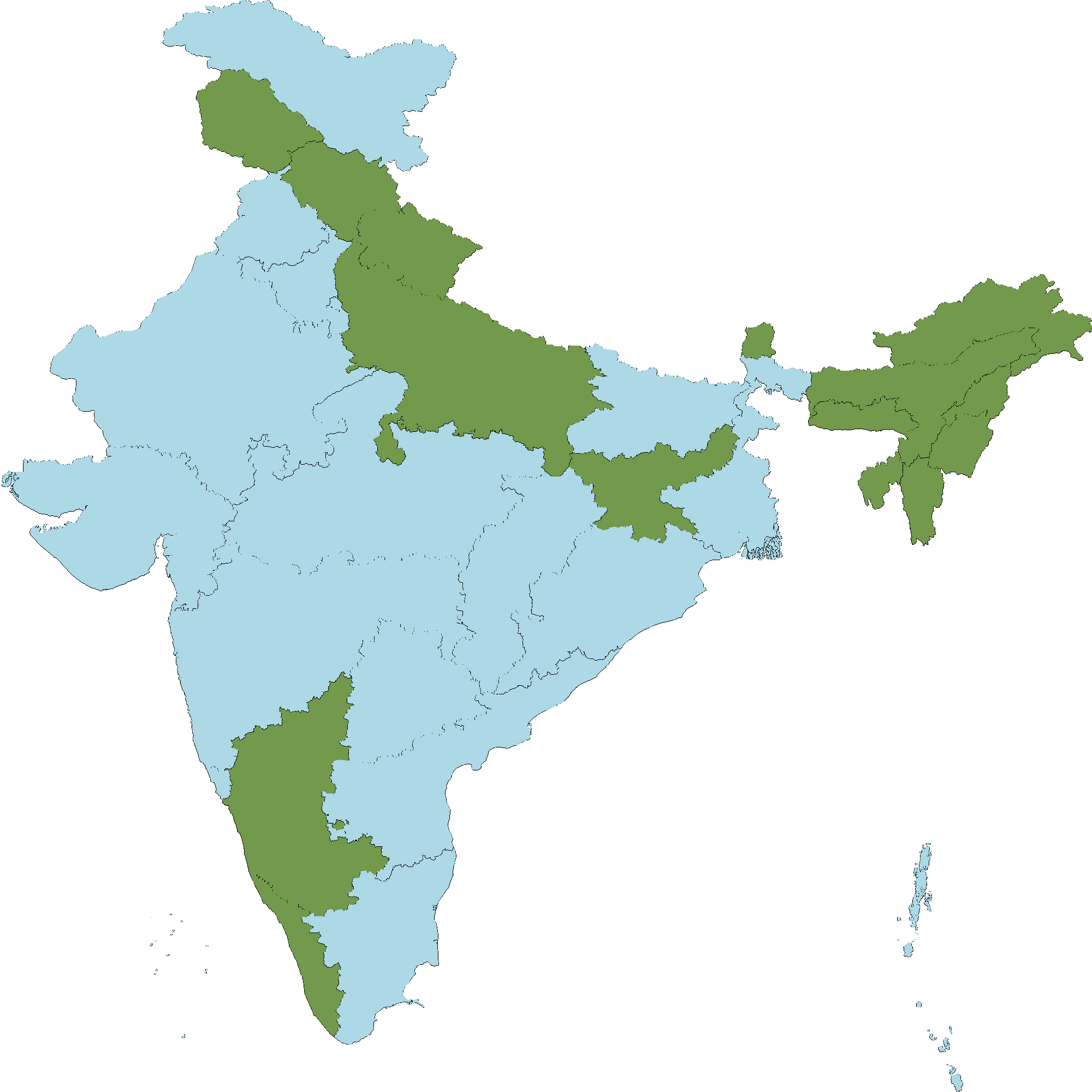 - Kerala : Wayanad district, Palakkad district, Idukki district, Alappuzha district