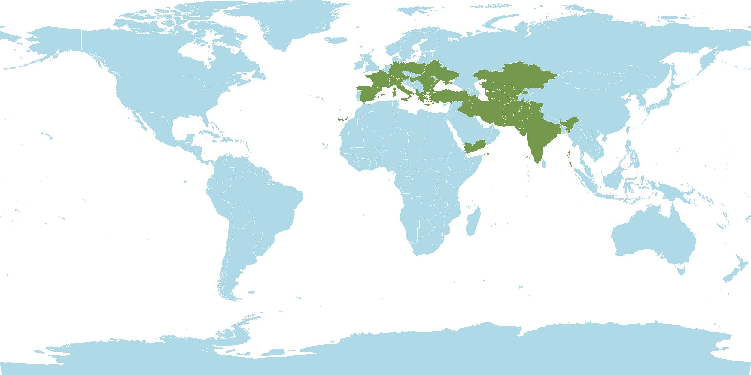- Native : Afghanistan, Albania, Altay, Austria, Baleares, Belarus, Bulgaria, Central European Russia, Czechoslovakia, East European Russia, France, Germany, Greece, Gulf States, Hungary, India, Iran, Iraq, Italy, Kazakhstan, Kirgizstan, Krasnoyarsk, Krym, North Cau
