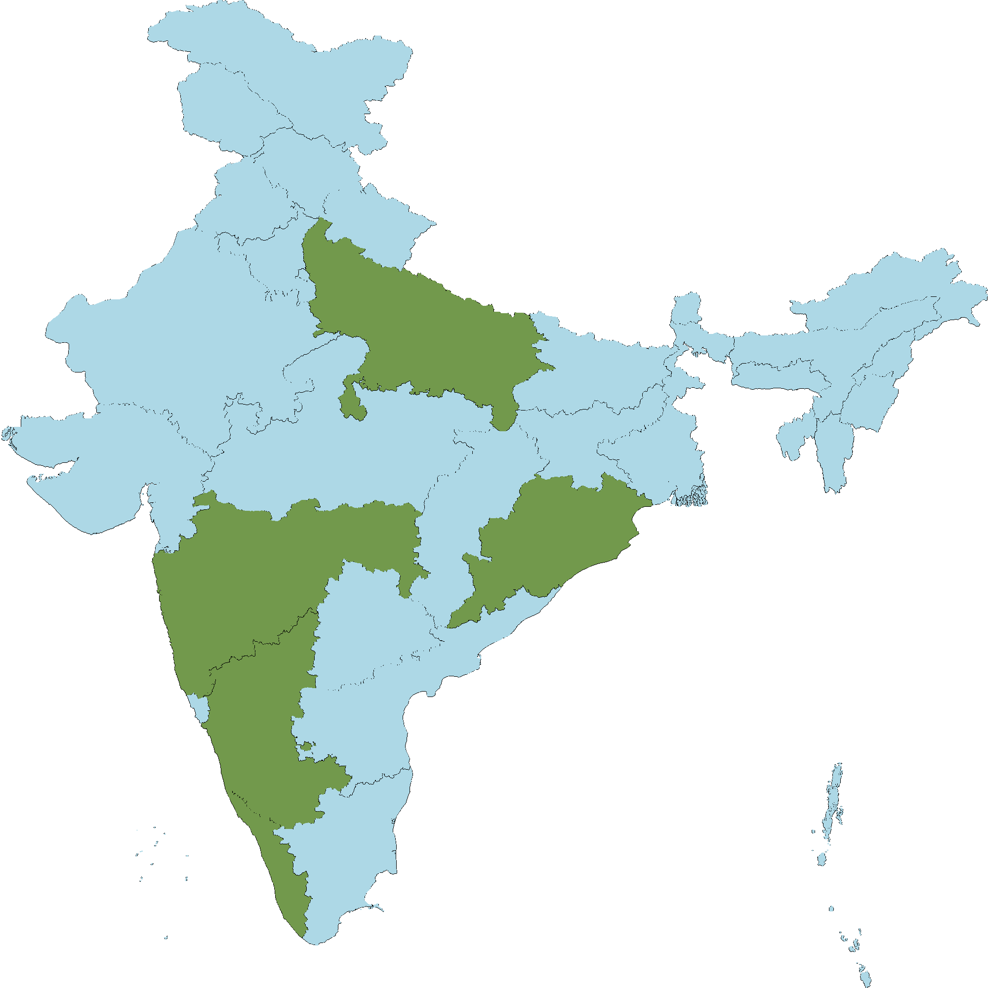 • Karnataka : Belagavi district, Chikkamagaluru district, Hassan district, Kodagu (Coorg) district, Mysuru district, Shivamogga district, Uttara Kannada district