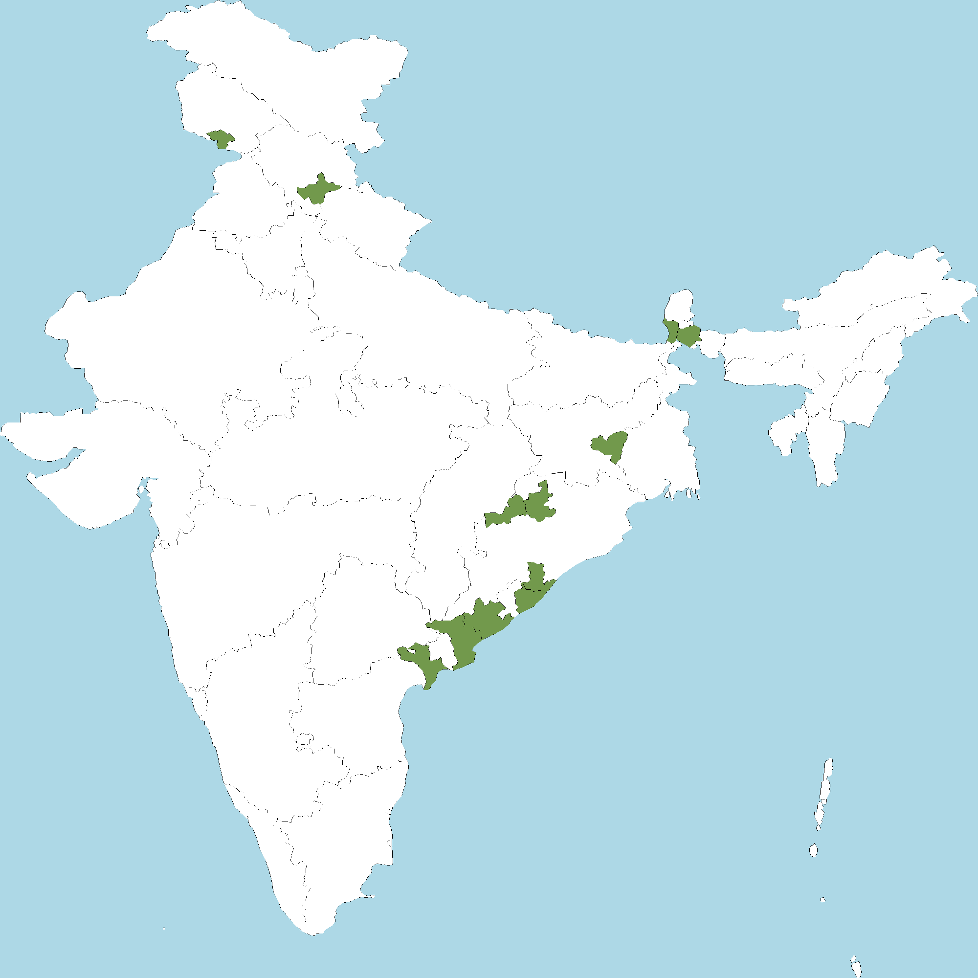 - Andhra Pradesh : East Godavari district, Srikakulam district, Krishna district, Visakhapatnam district