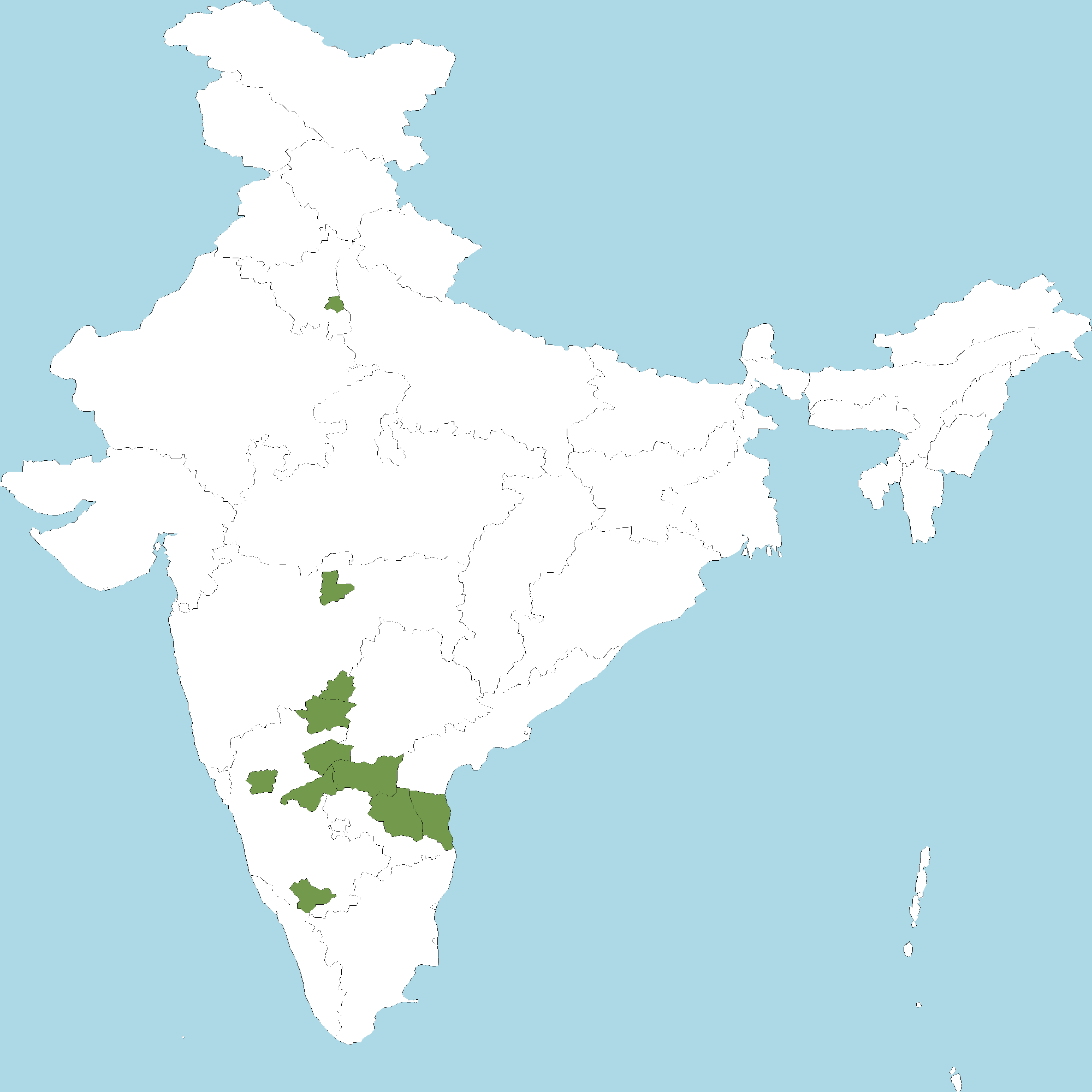 • Andhra Pradesh : Kurnool district, Y.S.R. Kadapa district, S.P.S. Nellore district