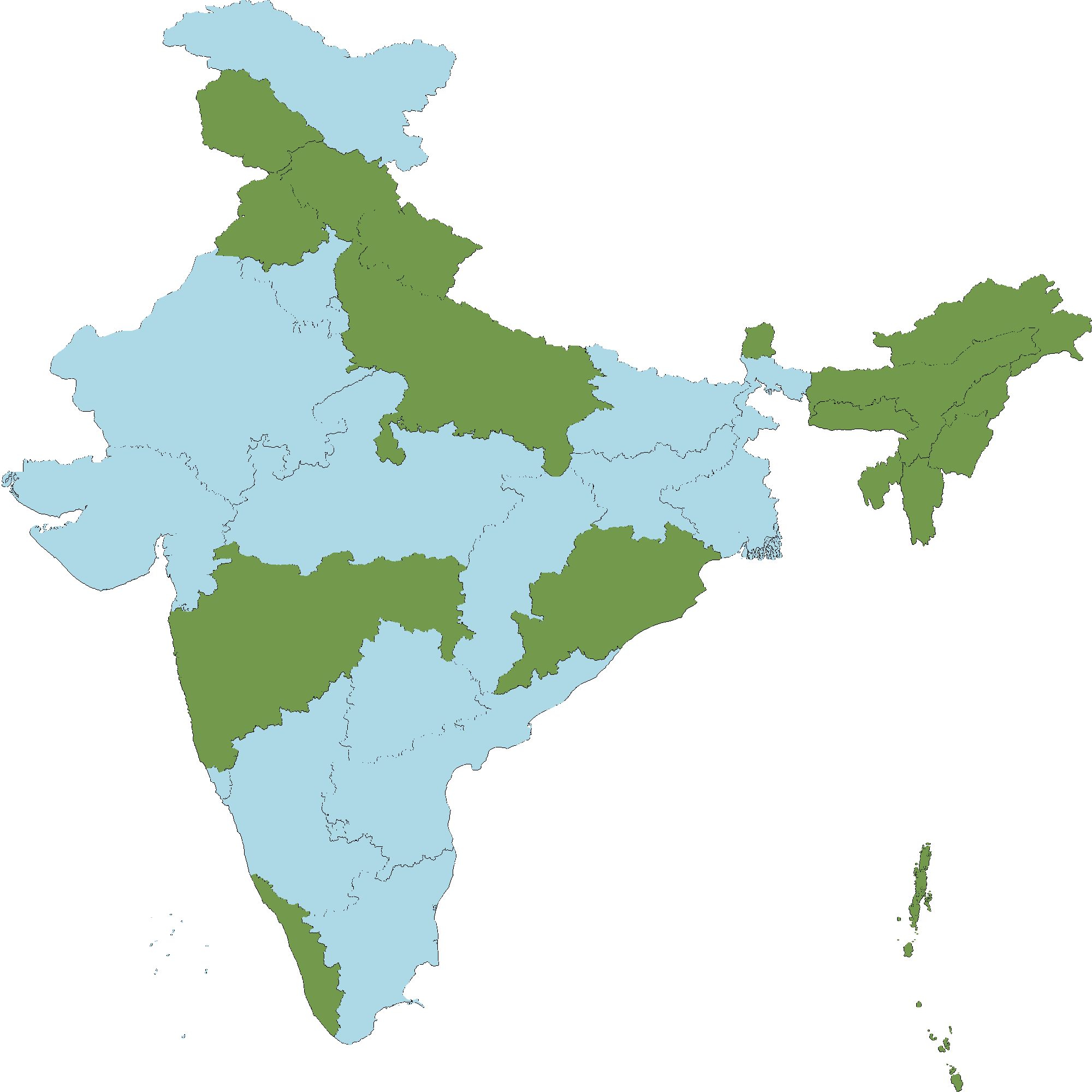 - Maharashtra : Bhandara district, Chandrapur district, Kolhapur district, Nagpur district, Raigad district, Ratnagiri district, Sindhudurg district, Thane district, Yavatmal district