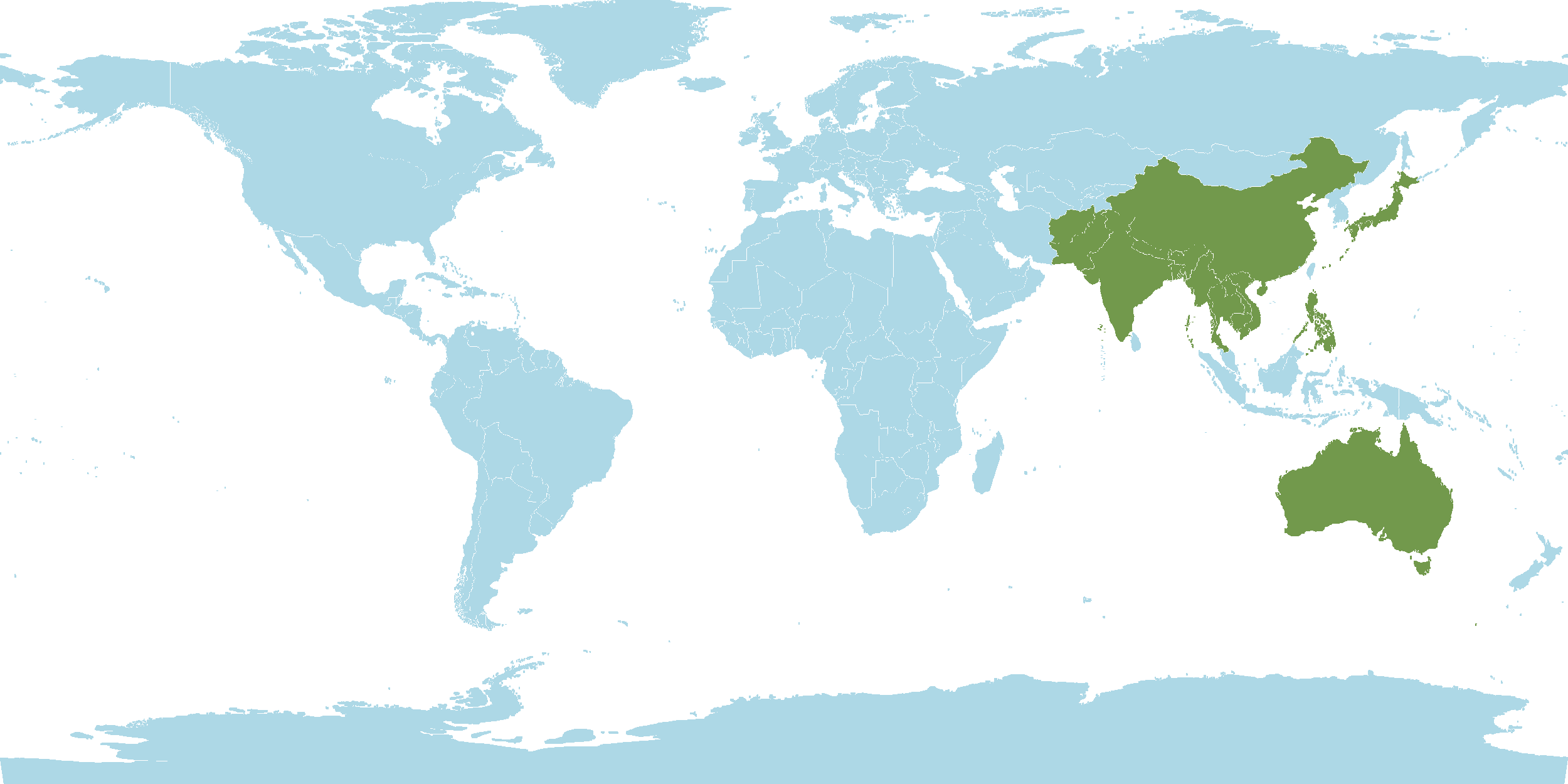 - Native : Afghanistan, Andaman Islands, Australia, Bangladesh, Bhutan, Borneo, Cambodia, China, Hainan, India, Inner Mongolia, Japan, Jawa, Korea, Laos, Lesser Sunda Islands, Malaya, Maluku, Myanmar, Nansei-shoto, Nepal, New Guinea, Pakistan, Philippines, Sulawesi,