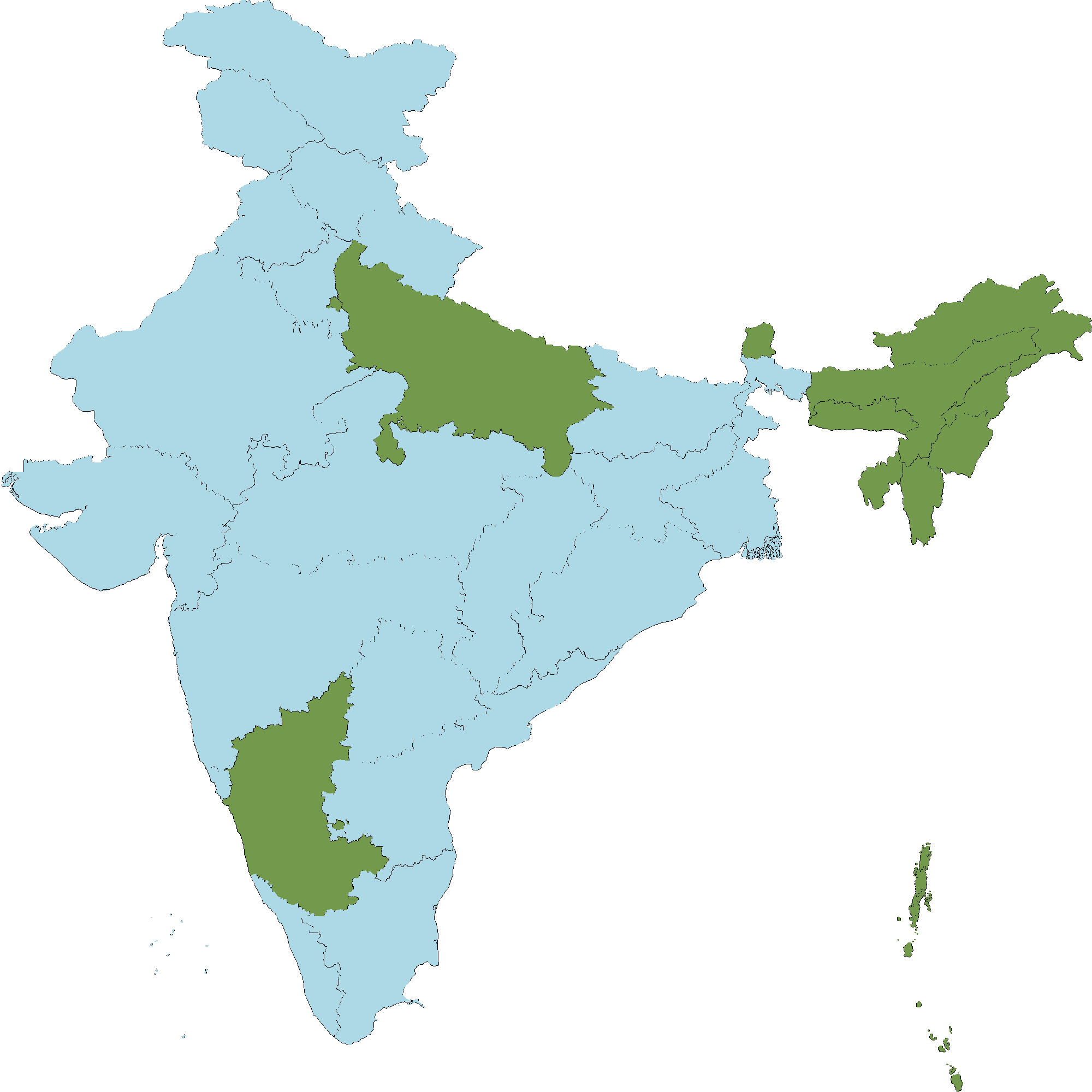 - Karnataka : Belagavi district, Kalaburagi (Gulbarga) district, Hassan district, Uttara Kannada district
