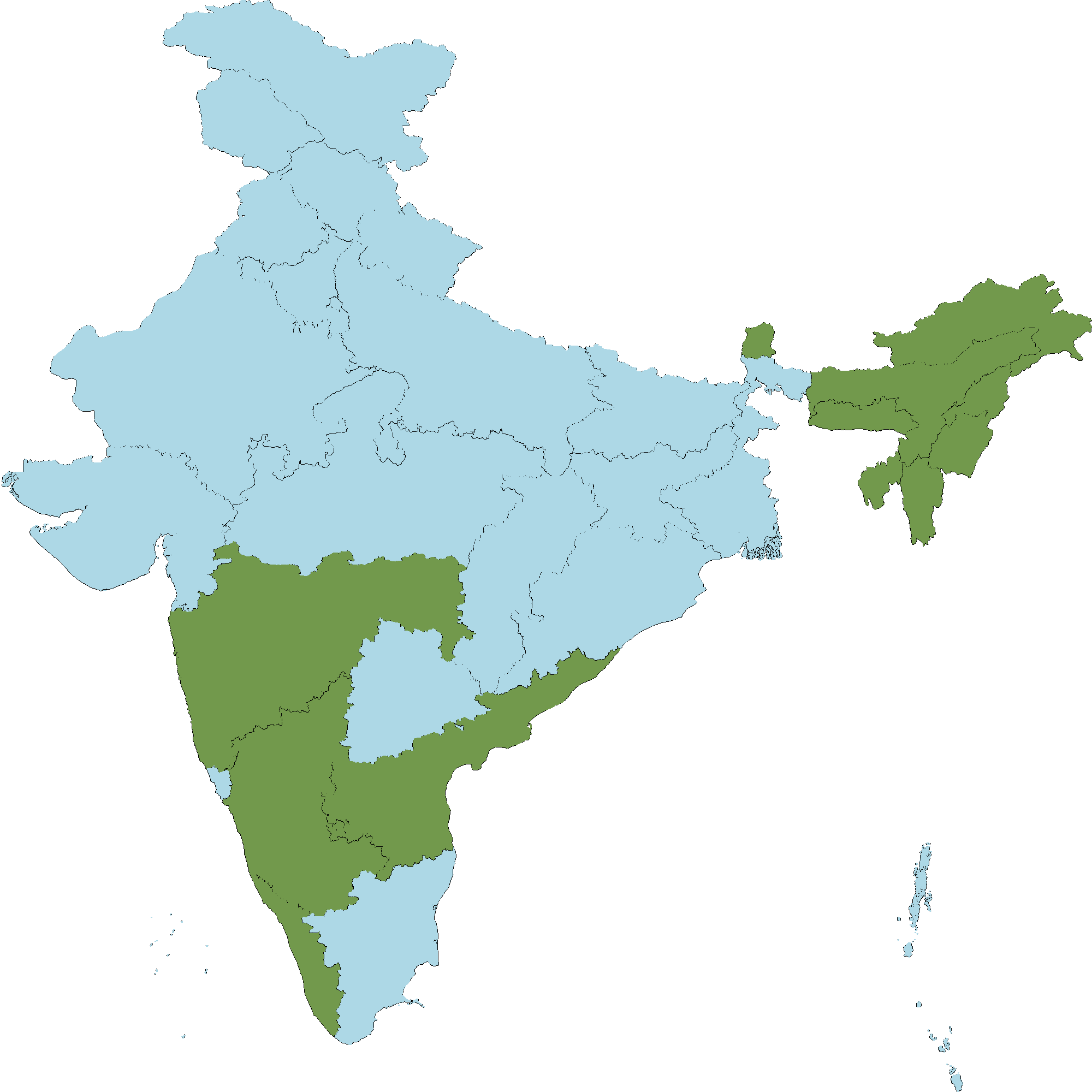 - Karnataka : Hassan district, Kodagu (Coorg) district, Dakshina Kannada district, Uttara Kannada district, Mysuru district