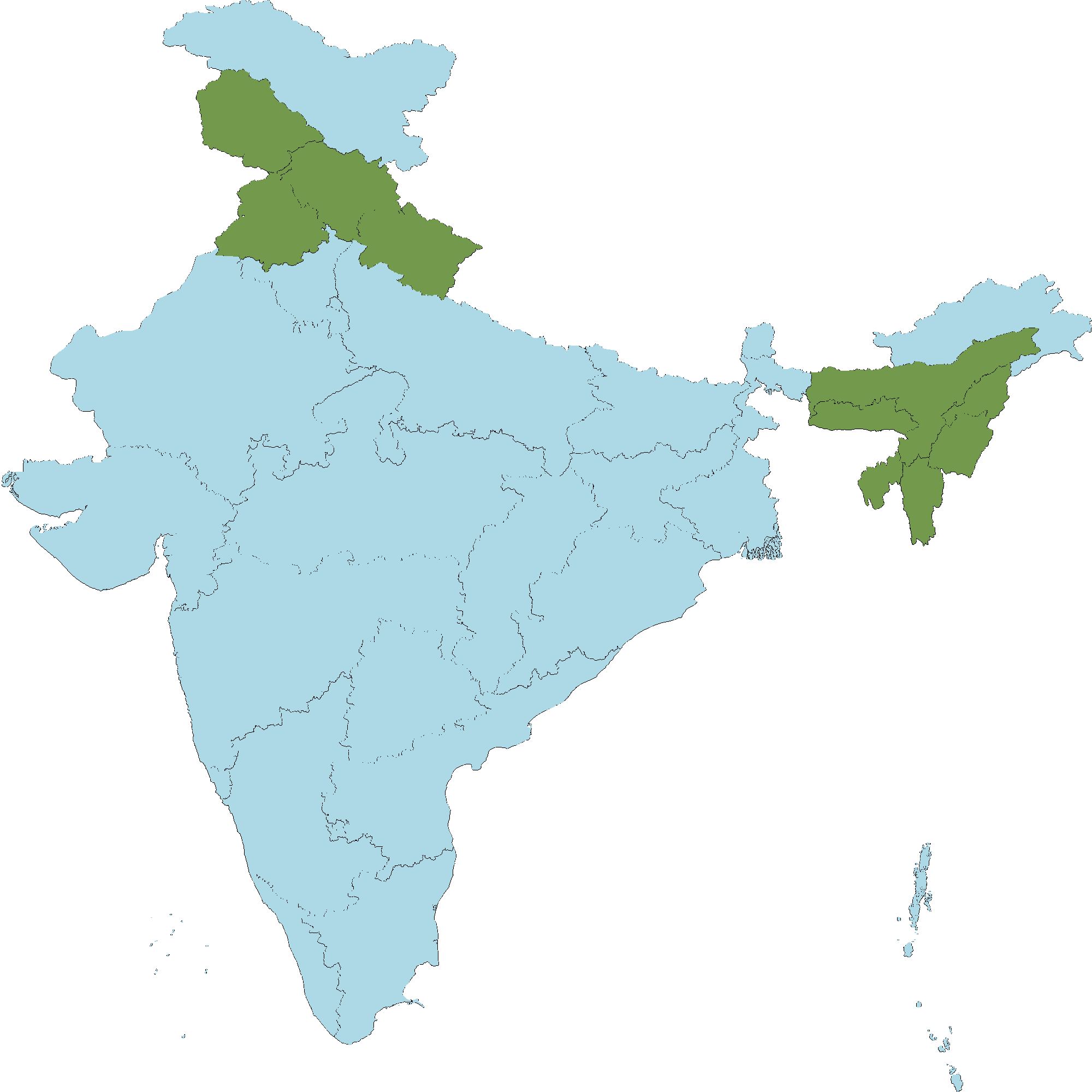 - Himachal Pradesh : Chamba district, Kinnaur district, Kullu district, Mandi district, Shimla district