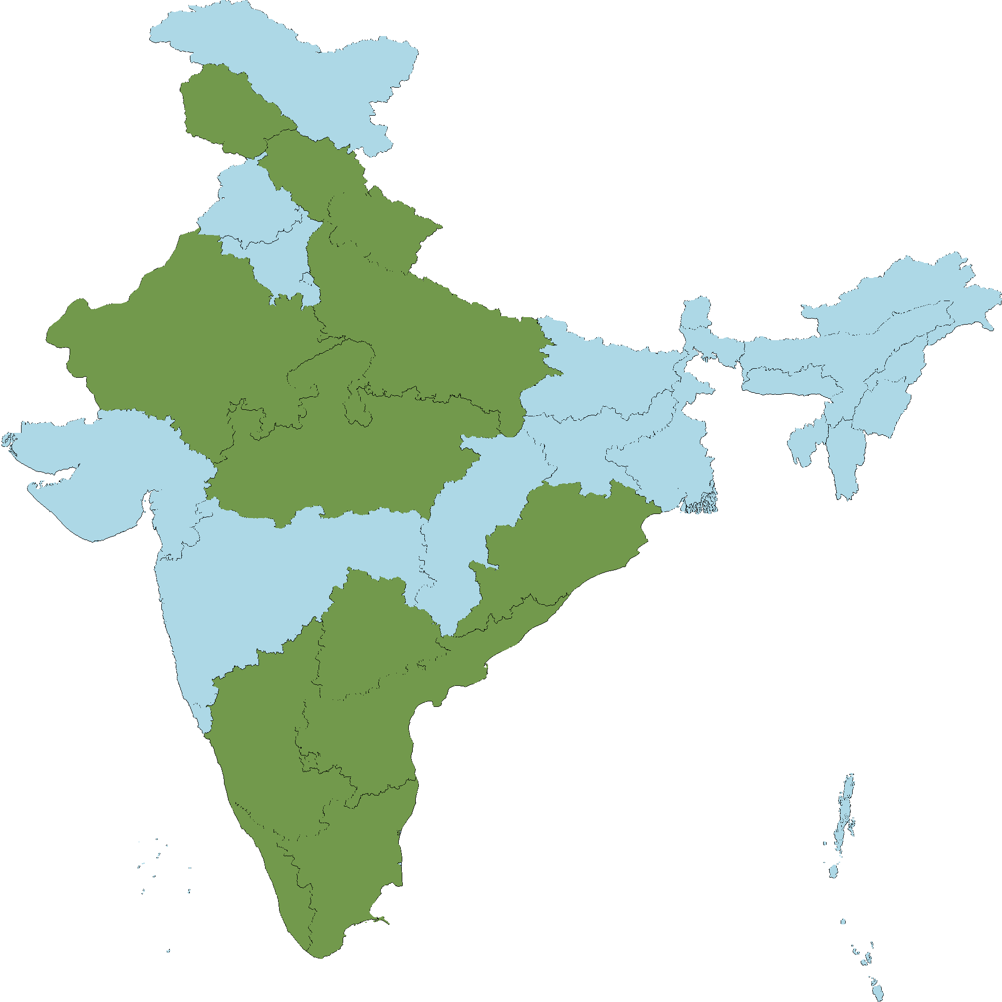 - Andhra Pradesh : Kurnool district, East Godavari district, Vishakapatnam district, Srikakulam district, Prakasam district, West Godavari district, Vizianagaram district, Krishna district, Guntur district, Nellore district, Kadapa district, Anantapur district, Chittoor district