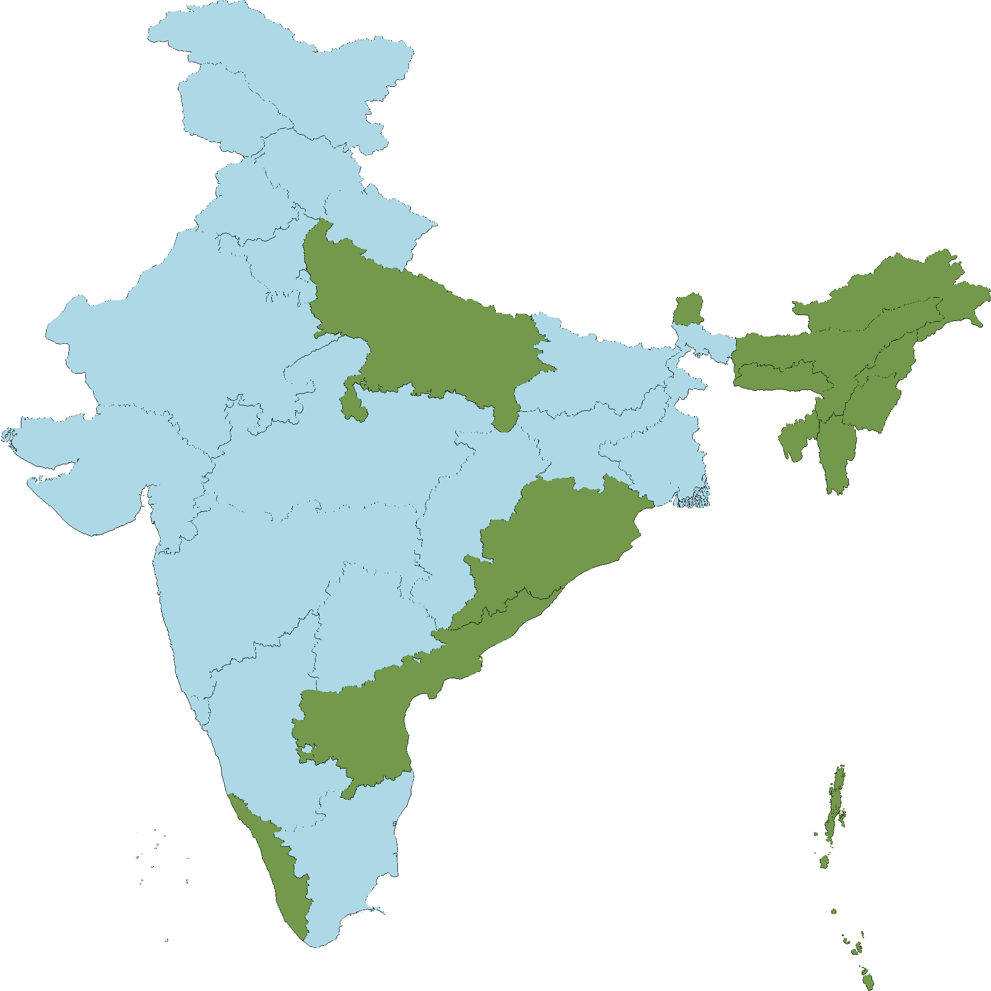- Kerala : Kannur district, Wayanad district, Malappuram district, Thrissur district, Pathanamthitta district