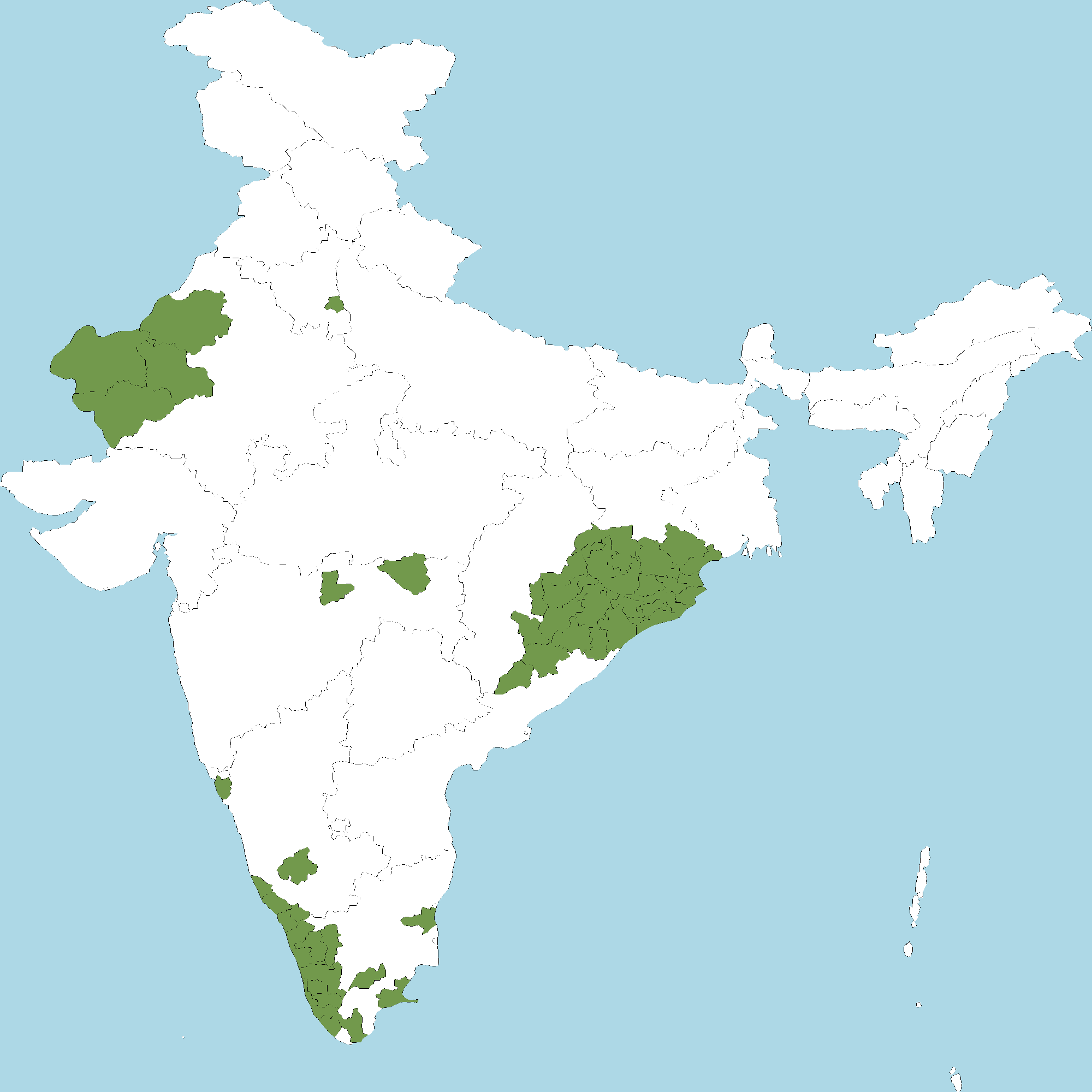 - Kerala : All districts of Kerala