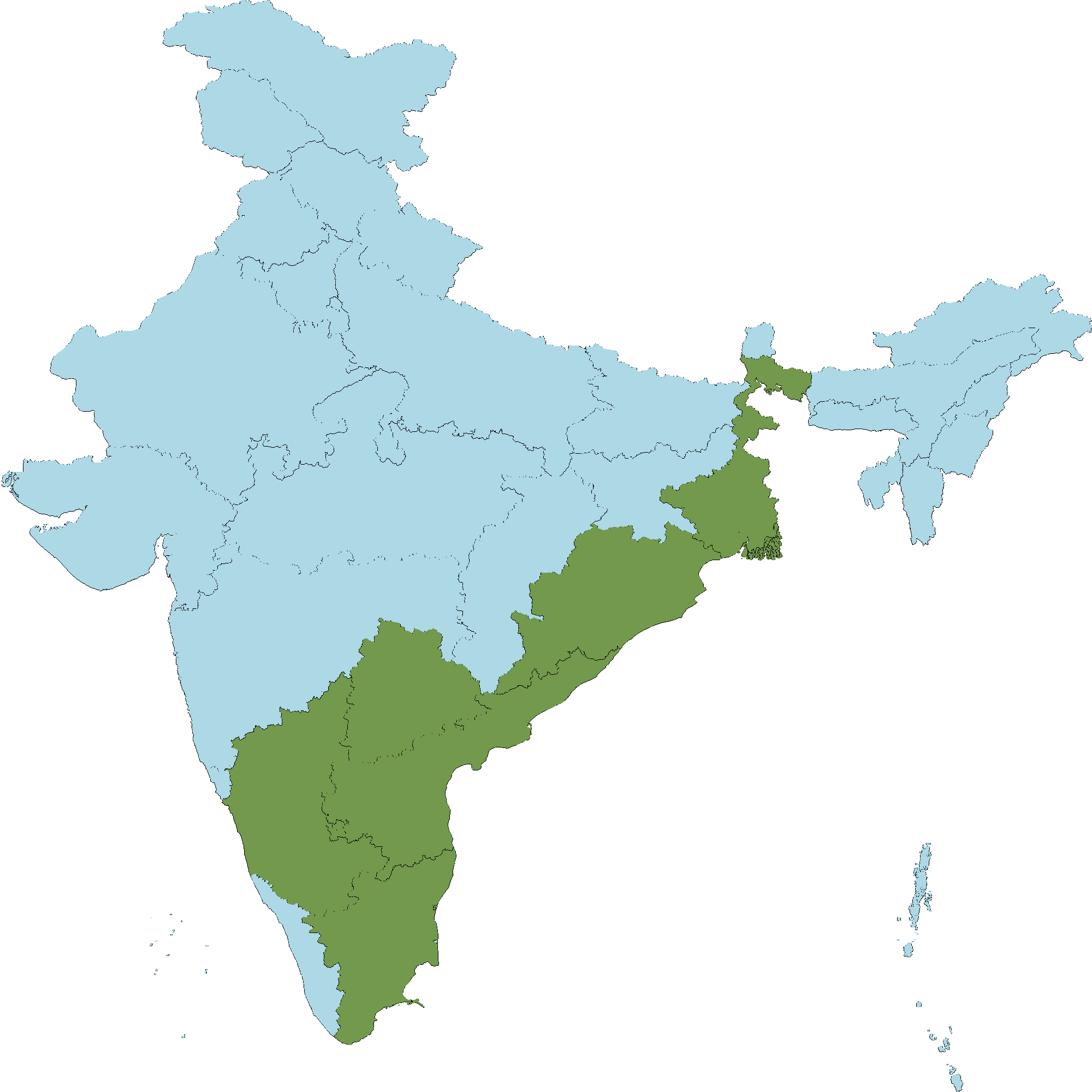 - Andhra Pradesh : Anantapur district, Chittoor district, Y.S.R. Kadapa district, East Godavari district, Guntur district, Krishna district, Kurnool district, S.P.S. Nellore district, Prakasam district, Srikakulam district, Visakhapatnam district, Vizianagaram district, West Godavari district