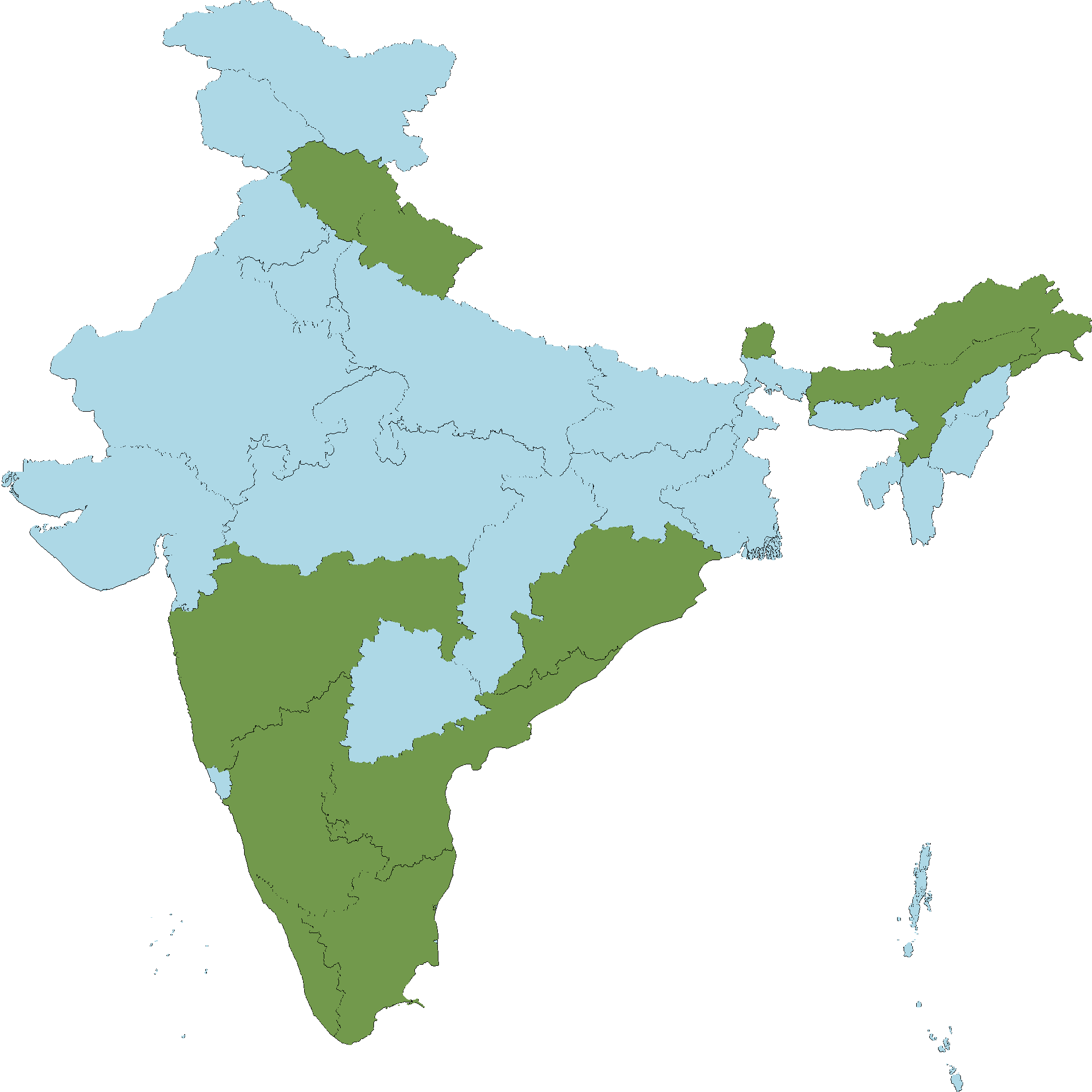 - Kerala : Kasaragod district, Kannur district, Wayanad district, Malappuram district, Palakkad district, Thrissur district, Idukki district